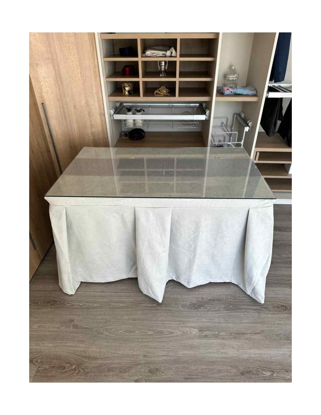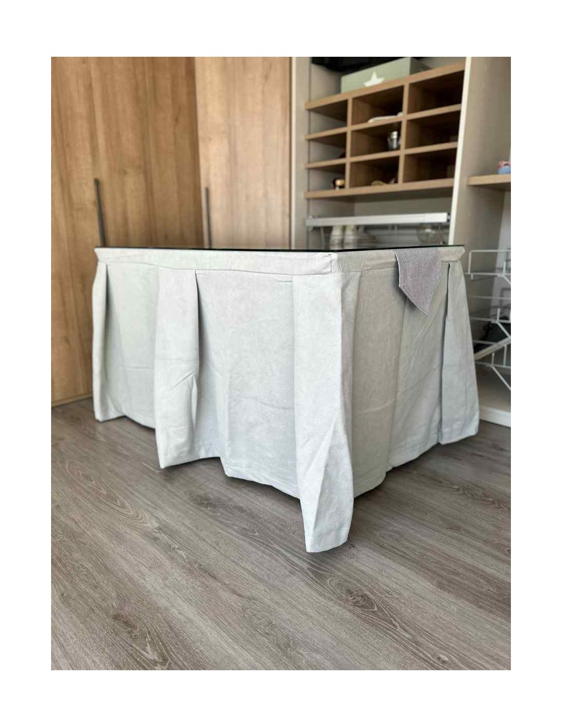 Vista su mesa de camilla con esta ropa de gran calidad y diseño italiano. Su tejido antimanchas le dará tranquilidad en el caso de que tenga pequeños o mascotas en casa. Este tipo de enaguas repele todo tipo de líquidos y evita, de esta manera, que la mancha llegue a quedarse impregnada en el tejido.