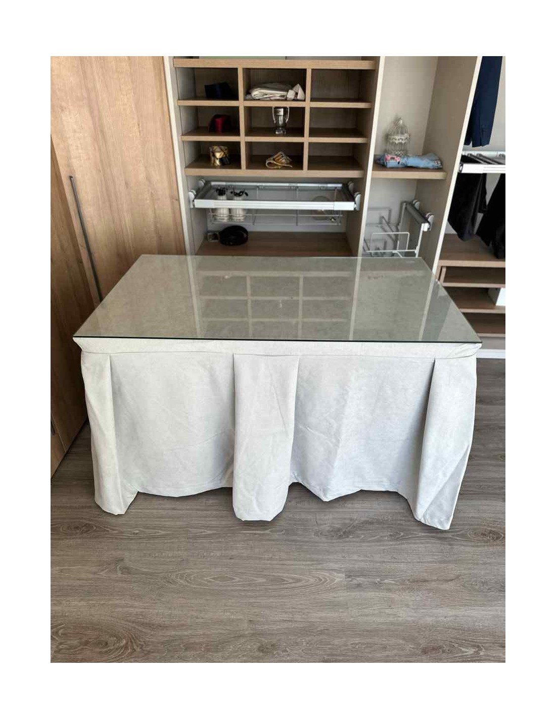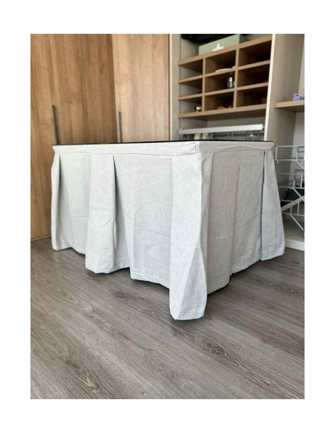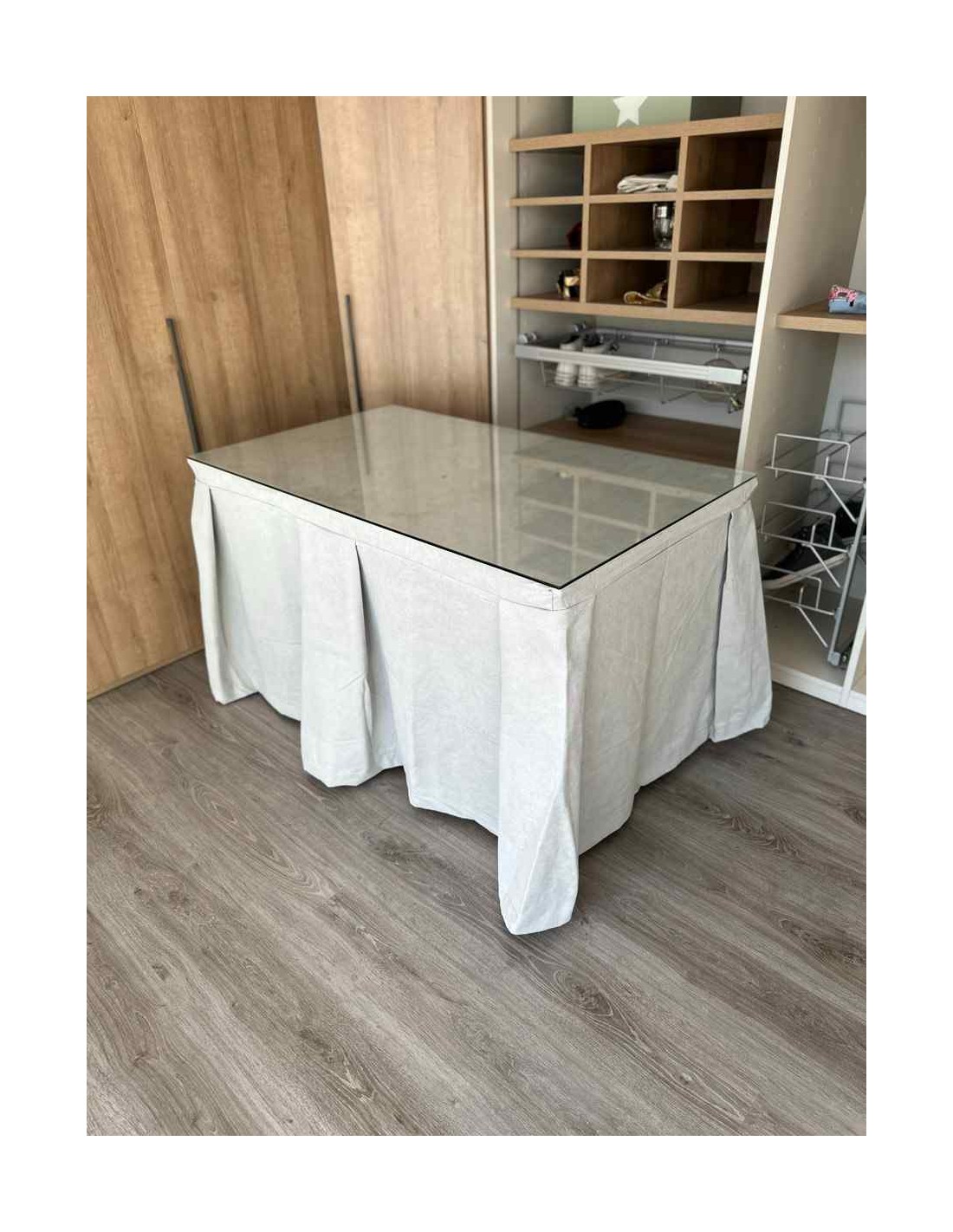 Vista su mesa de camilla con esta ropa de gran calidad y diseño italiano. Su tejido antimanchas le dará tranquilidad en el caso de que tenga pequeños o mascotas en casa. Este tipo de enaguas repele todo tipo de líquidos y evita, de esta manera, que la mancha llegue a quedarse impregnada en el tejido.