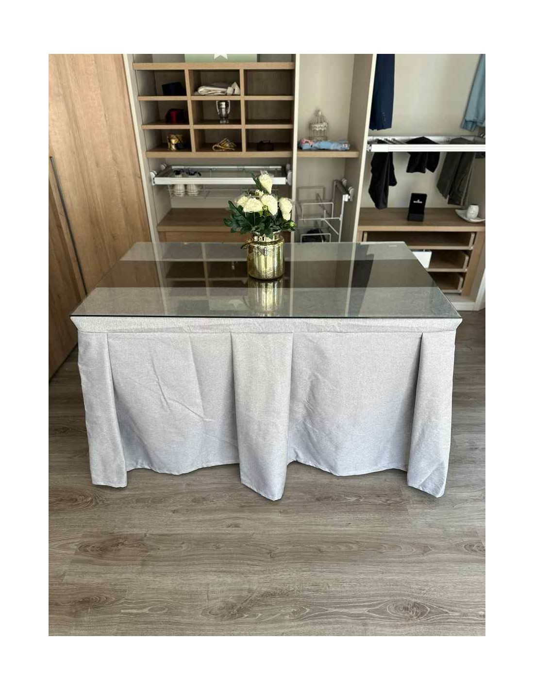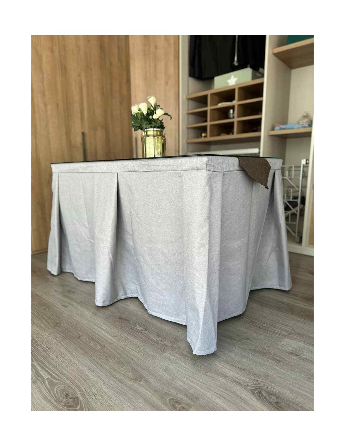 Vista su mesa de camilla con esta ropa de gran calidad y diseño italiano. Su tejido antimanchas le dará tranquilidad en el caso de que tenga pequeños o mascotas en casa. Este tipo de enaguas repele todo tipo de líquidos y evita, de esta manera, que la mancha llegue a quedarse impregnada en el tejido.