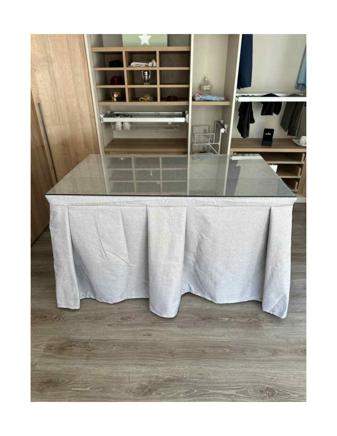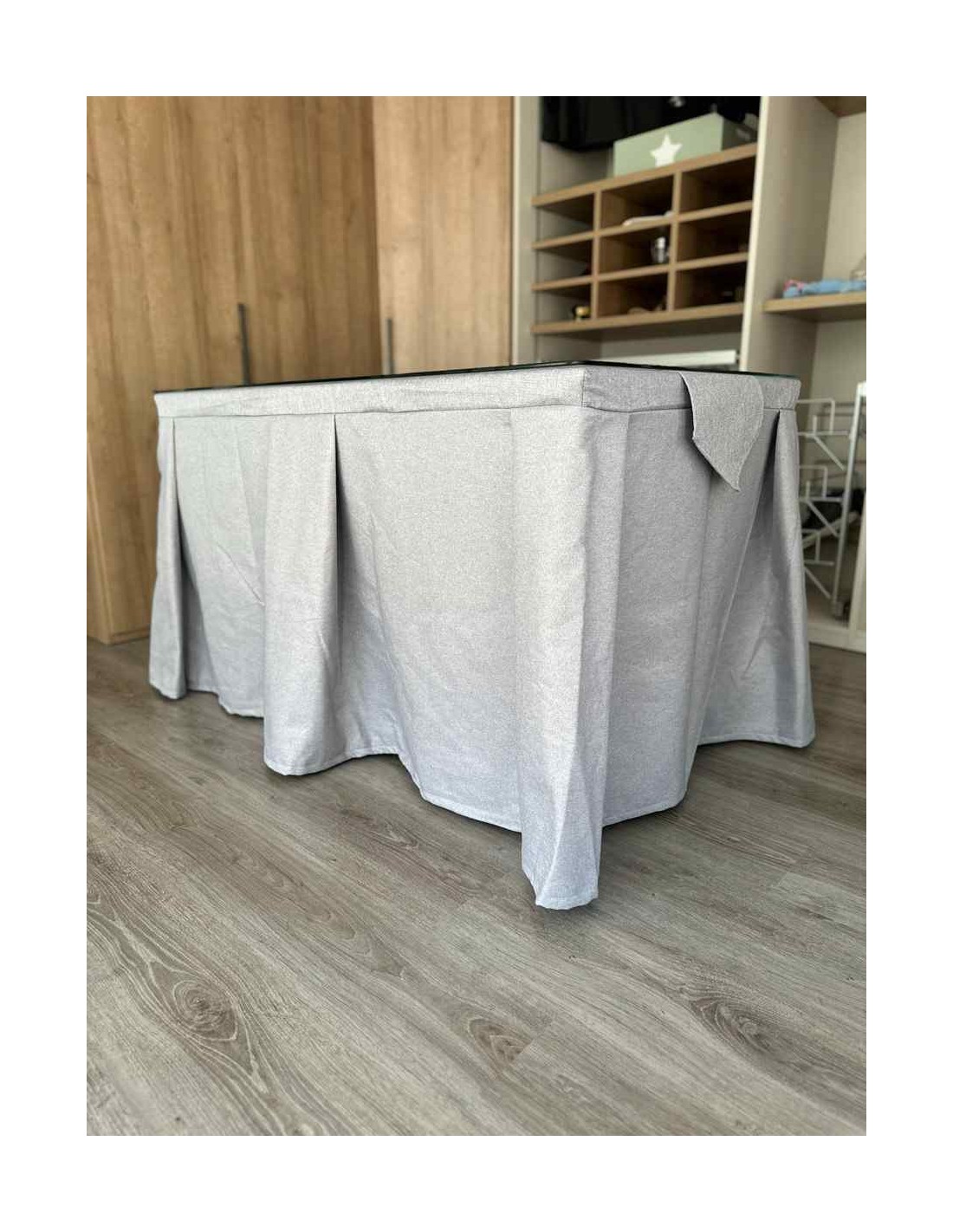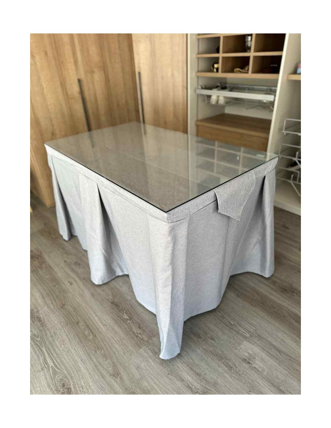 Vista su mesa de camilla con esta ropa de gran calidad y diseño italiano. Su tejido antimanchas le dará tranquilidad en el caso de que tenga pequeños o mascotas en casa. Este tipo de enaguas repele todo tipo de líquidos y evita, de esta manera, que la mancha llegue a quedarse impregnada en el tejido.