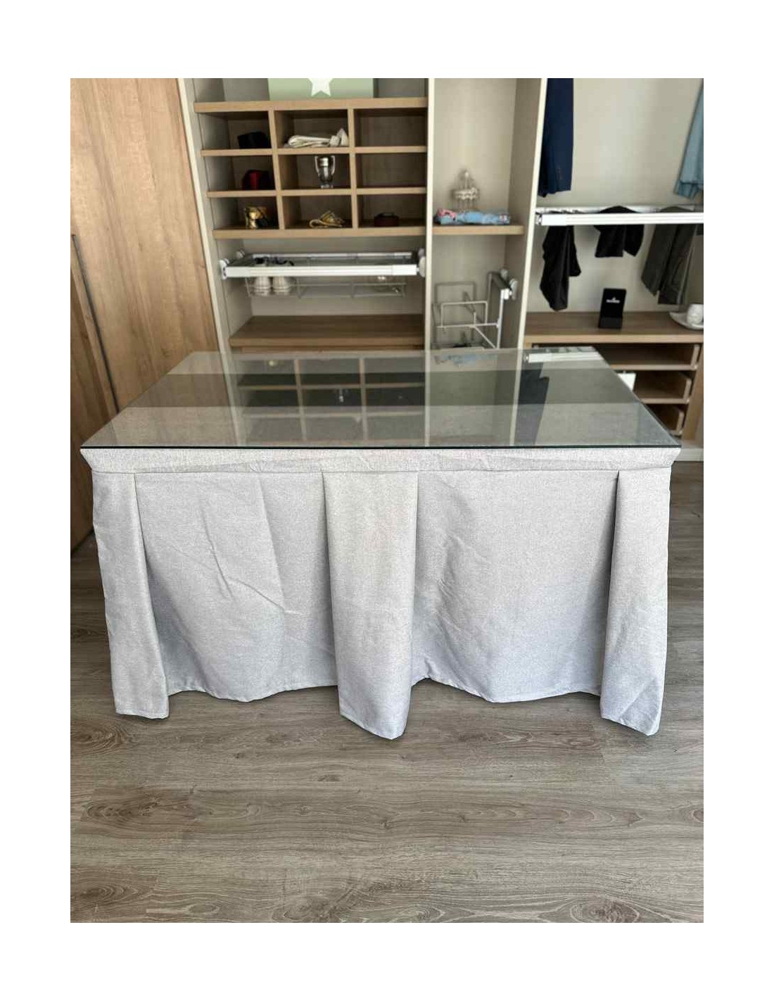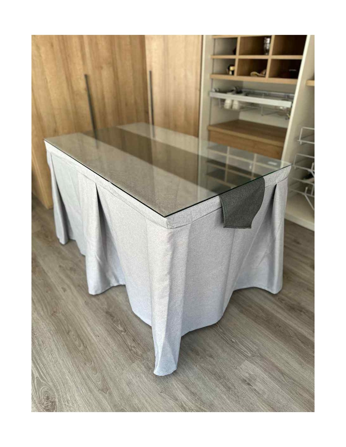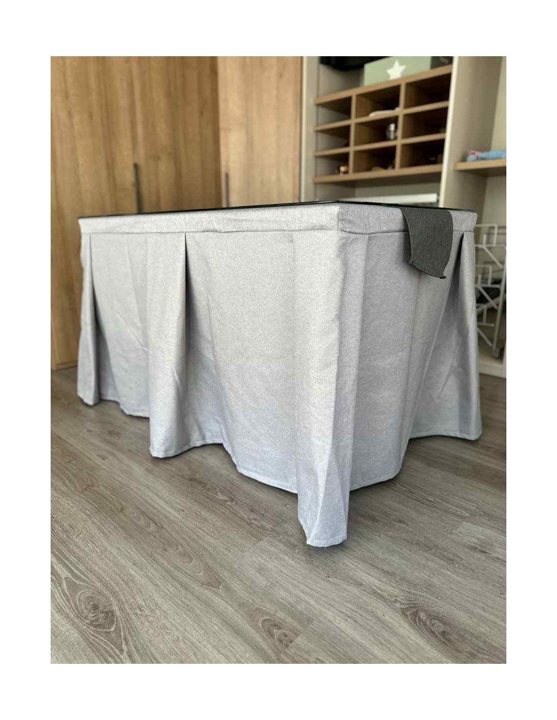 Vista su mesa de camilla con esta ropa de gran calidad y diseño italiano. Su tejido antimanchas le dará tranquilidad en el caso de que tenga pequeños o mascotas en casa. Este tipo de enaguas repele todo tipo de líquidos y evita, de esta manera, que la mancha llegue a quedarse impregnada en el tejido.
