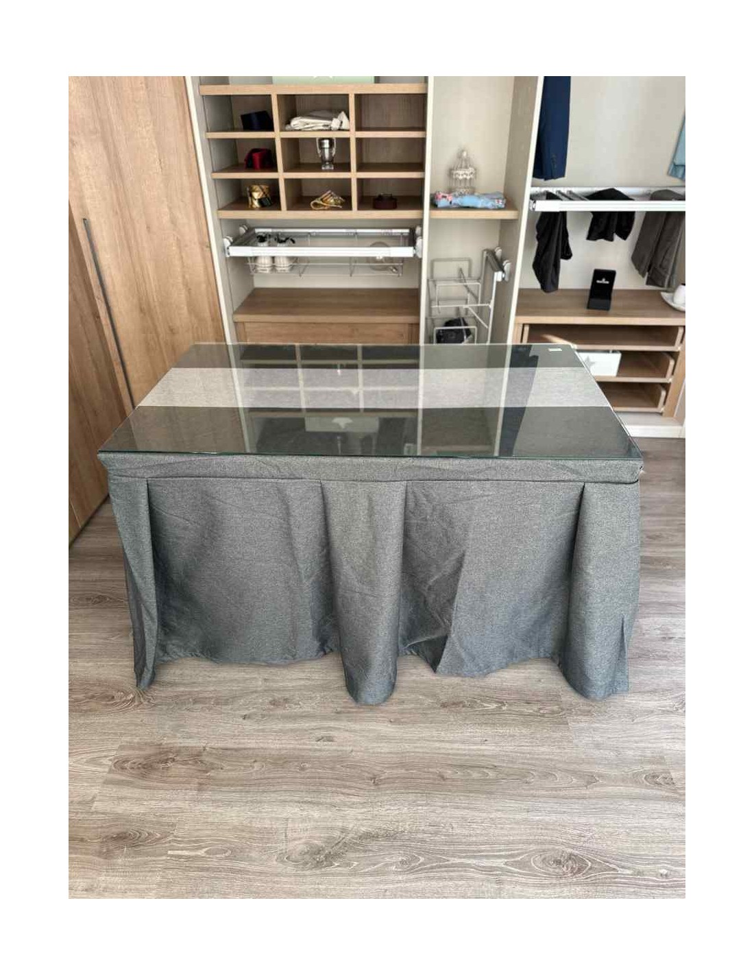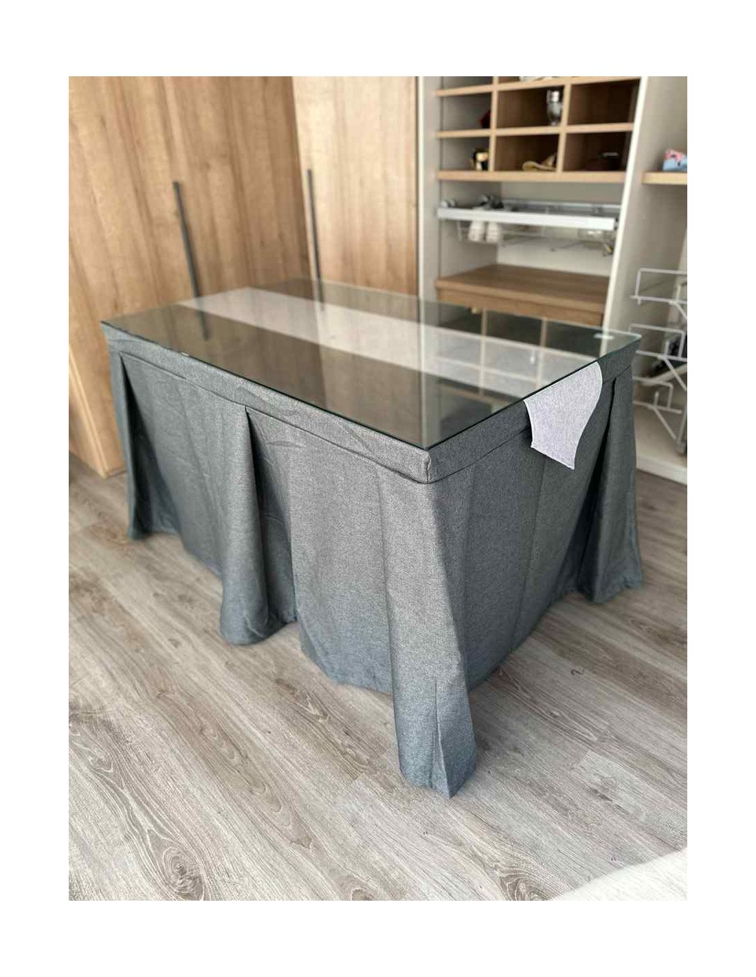 Vista su mesa de camilla con esta ropa de gran calidad y diseño italiano. Su tejido antimanchas le dará tranquilidad en el caso de que tenga pequeños o mascotas en casa. Este tipo de enaguas repele todo tipo de líquidos y evita, de esta manera, que la mancha llegue a quedarse impregnada en el tejido.