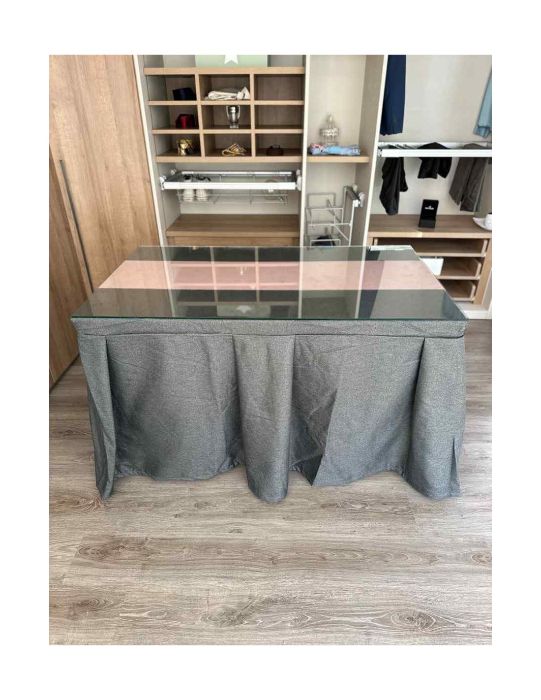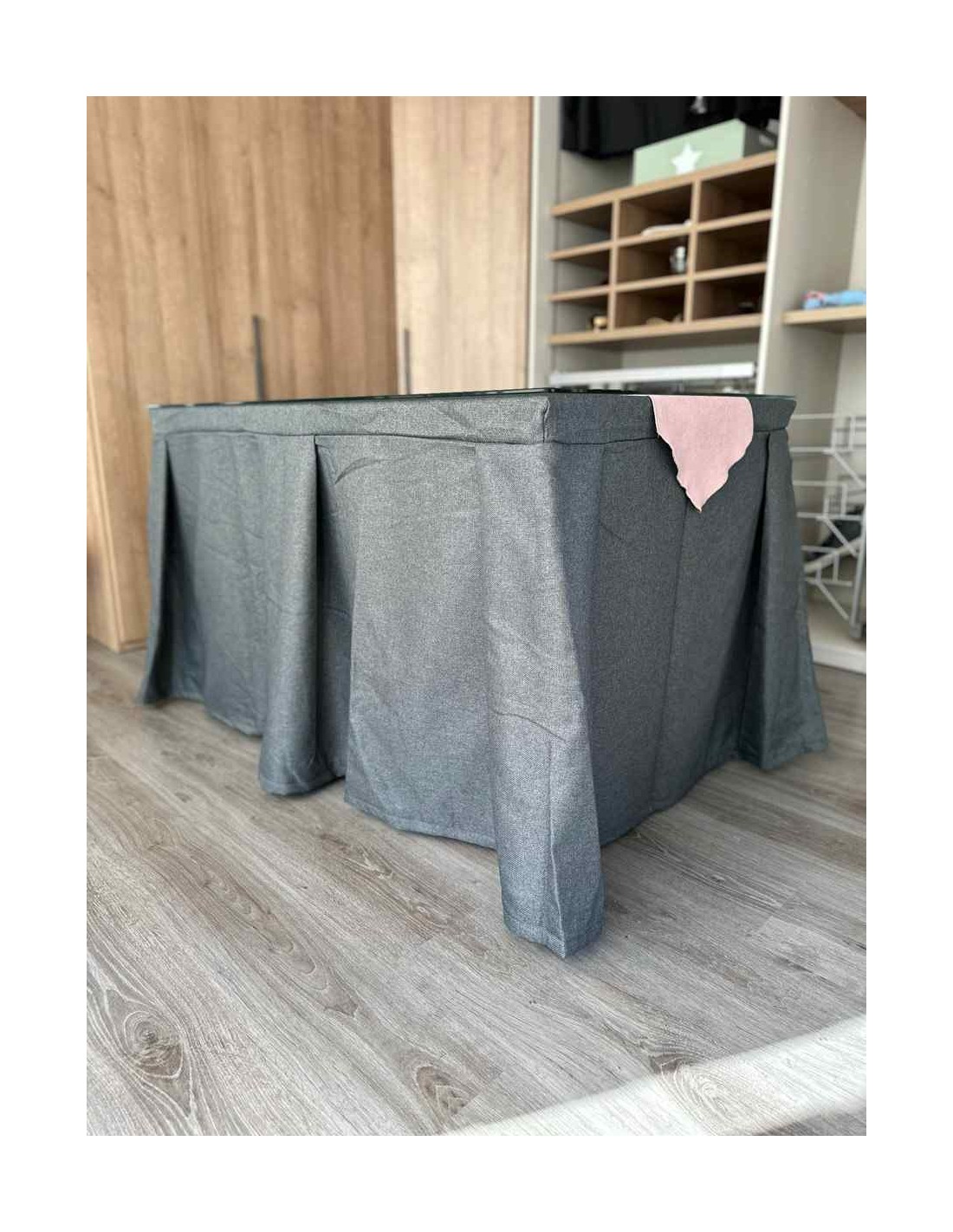 Vista su mesa de camilla con esta ropa de gran calidad y diseño italiano. Su tejido antimanchas le dará tranquilidad en el caso de que tenga pequeños o mascotas en casa. Este tipo de enaguas repele todo tipo de líquidos y evita, de esta manera, que la mancha llegue a quedarse impregnada en el tejido.