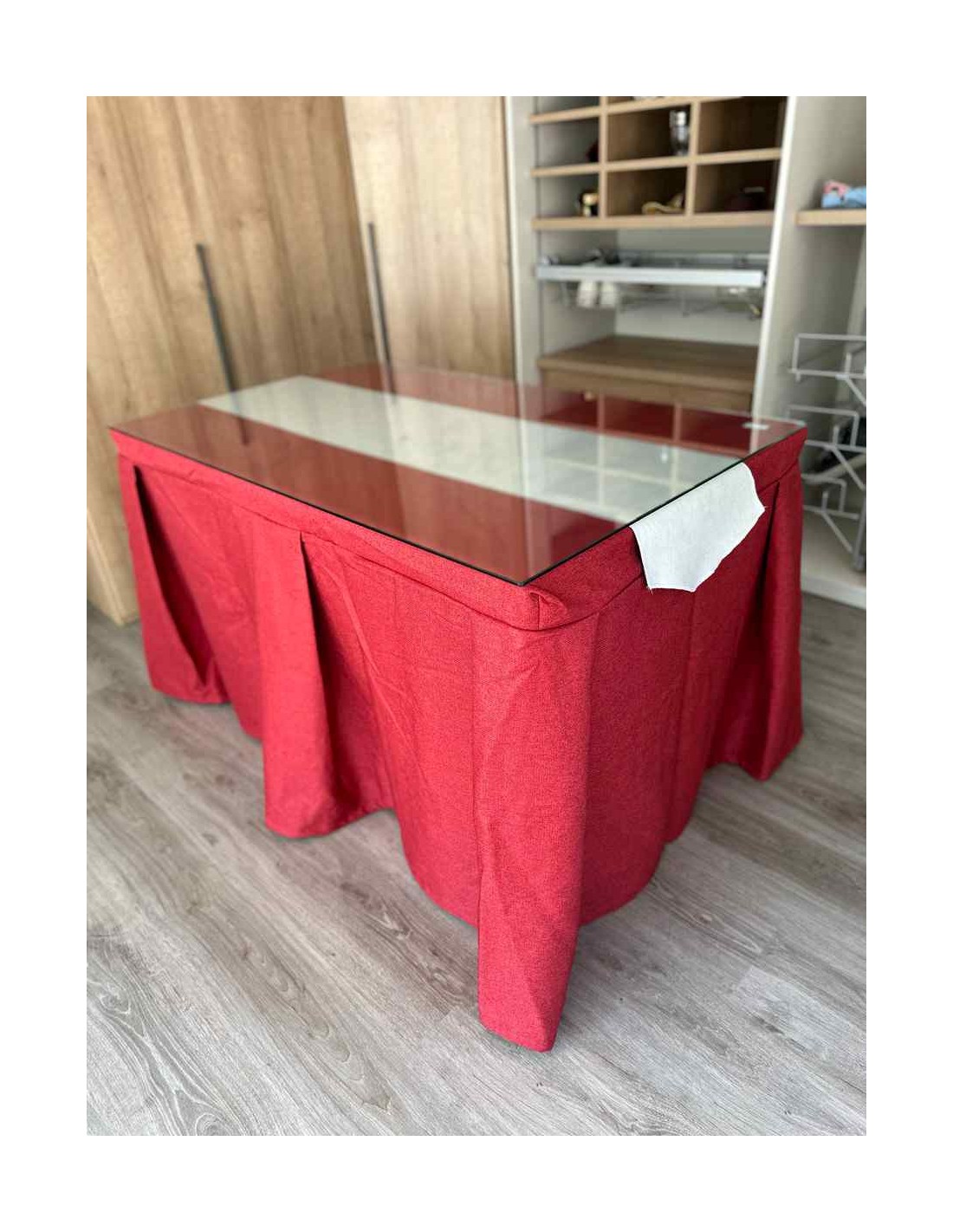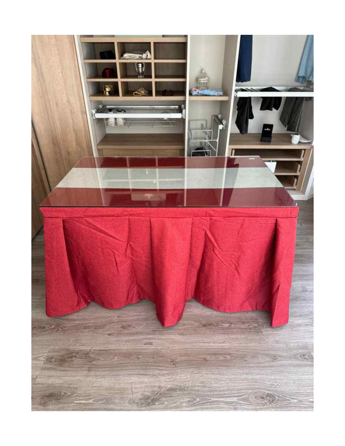 Vista su mesa de camilla con esta ropa de gran calidad y diseño italiano. Su tejido antimanchas le dará tranquilidad en el caso de que tenga pequeños o mascotas en casa. Este tipo de enaguas repele todo tipo de líquidos y evita, de esta manera, que la mancha llegue a quedarse impregnada en el tejido.