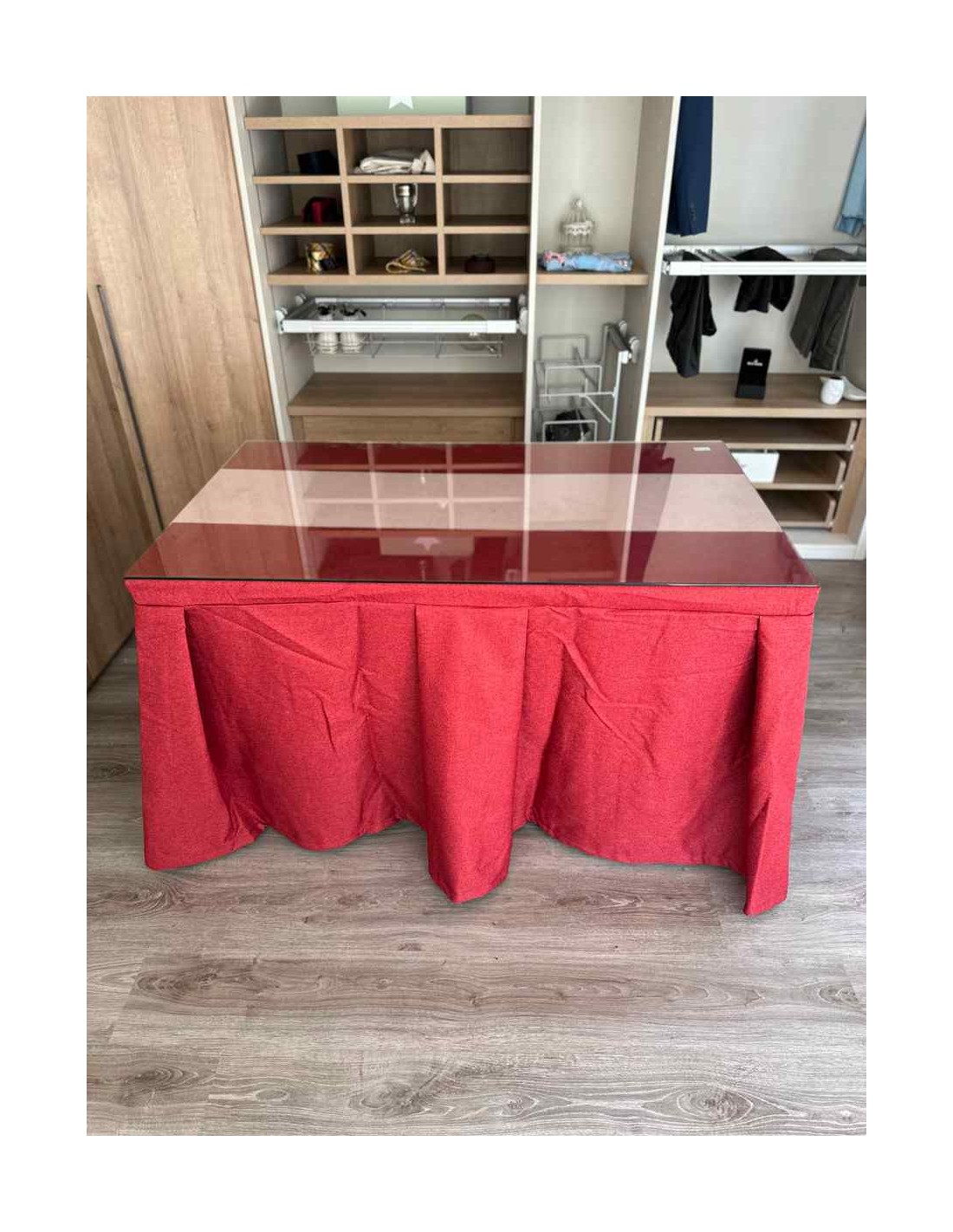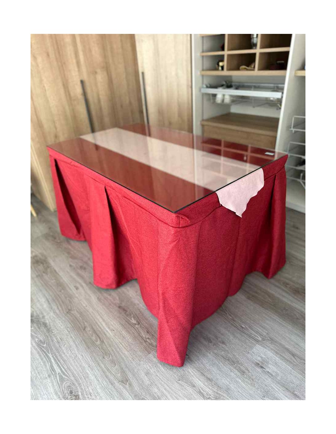 Vista su mesa de camilla con esta ropa de gran calidad y diseño italiano. Su tejido antimanchas le dará tranquilidad en el caso de que tenga pequeños o mascotas en casa. Este tipo de enaguas repele todo tipo de líquidos y evita, de esta manera, que la mancha llegue a quedarse impregnada en el tejido.