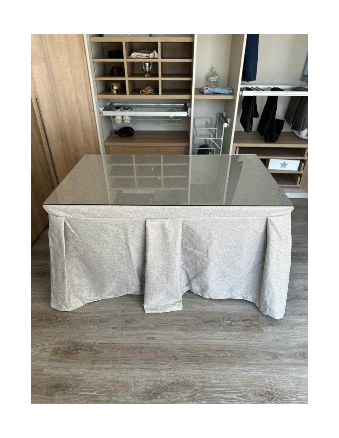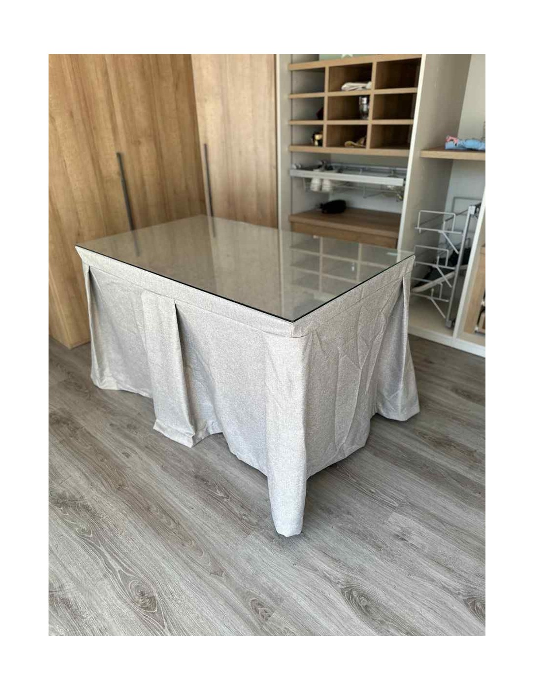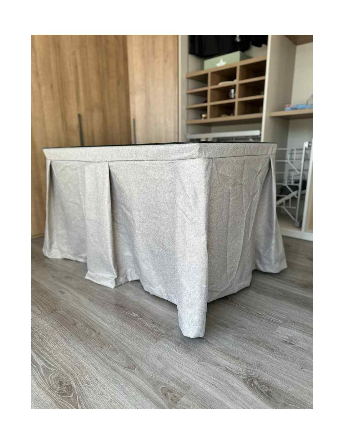 Vista su mesa de camilla con esta ropa de gran calidad y diseño italiano. Su tejido antimanchas le dará tranquilidad en el caso de que tenga pequeños o mascotas en casa. Este tipo de enaguas repele todo tipo de líquidos y evita, de esta manera, que la mancha llegue a quedarse impregnada en el tejido.