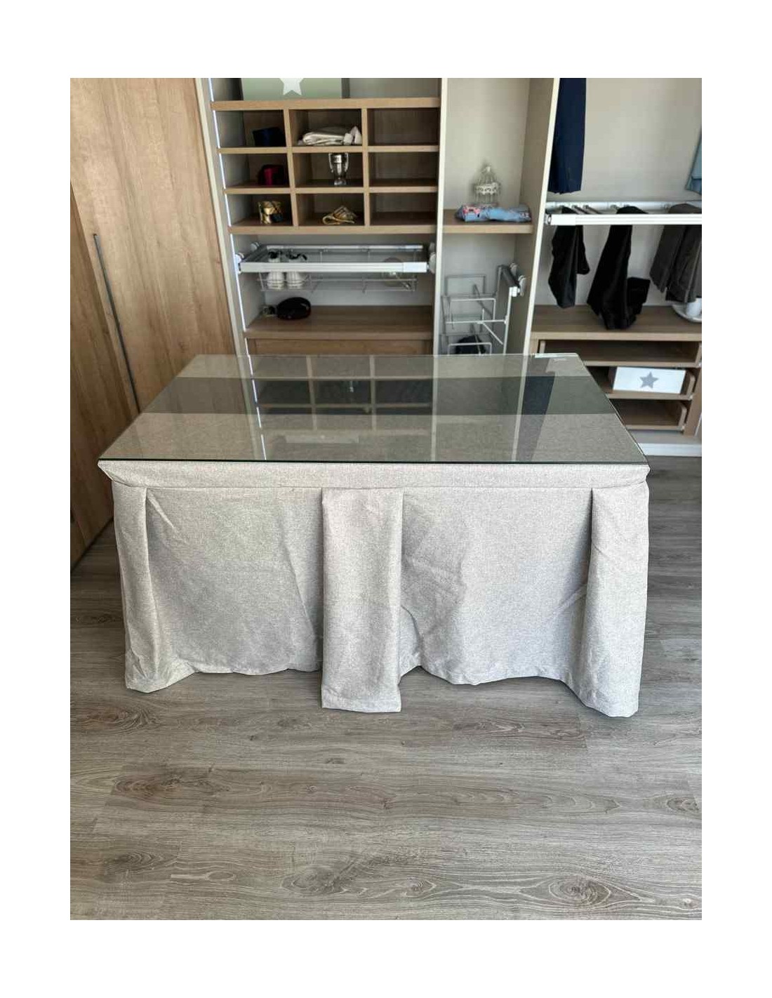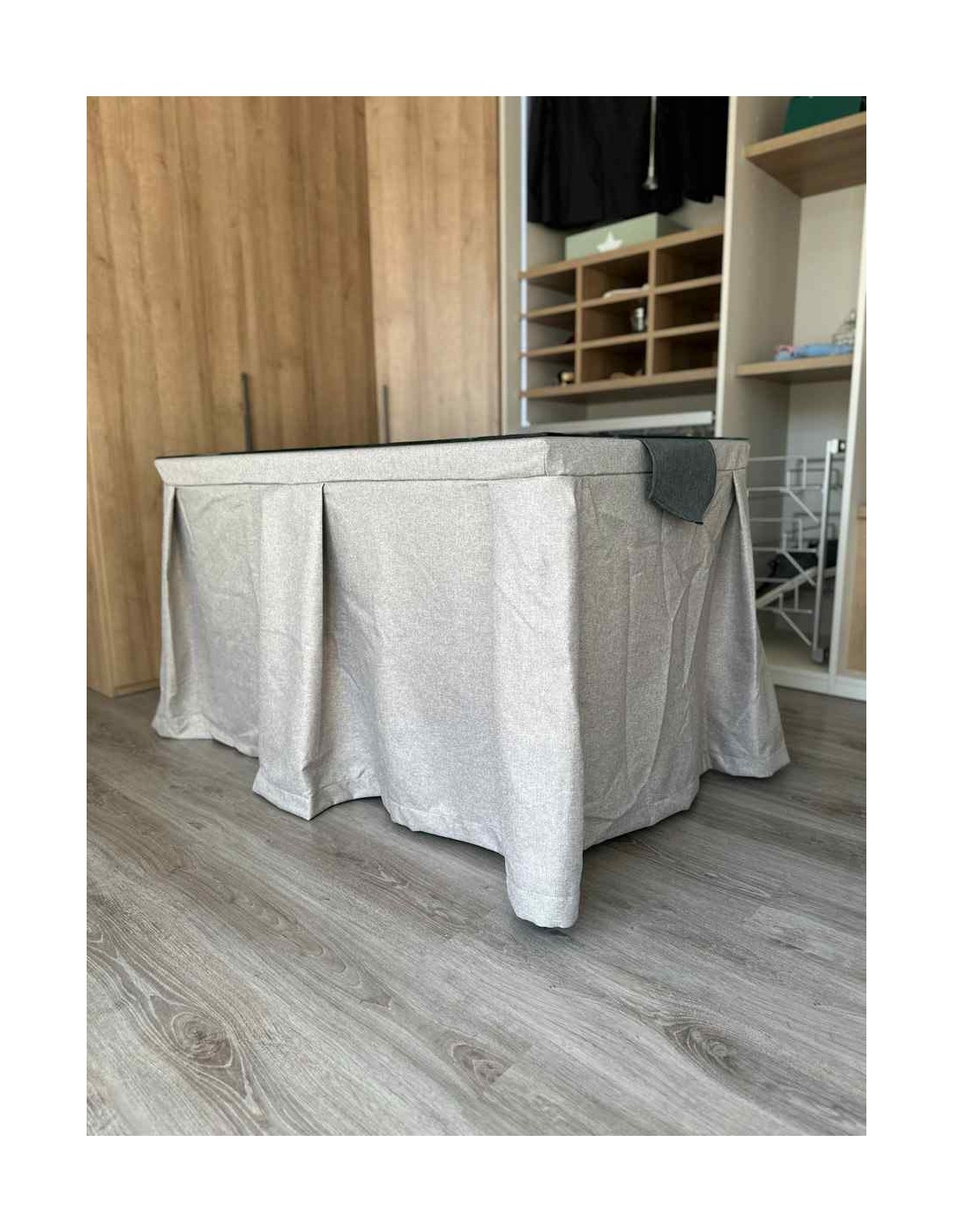 Vista su mesa de camilla con esta ropa de gran calidad y diseño italiano. Su tejido antimanchas le dará tranquilidad en el caso de que tenga pequeños o mascotas en casa. Este tipo de enaguas repele todo tipo de líquidos y evita, de esta manera, que la mancha llegue a quedarse impregnada en el tejido.