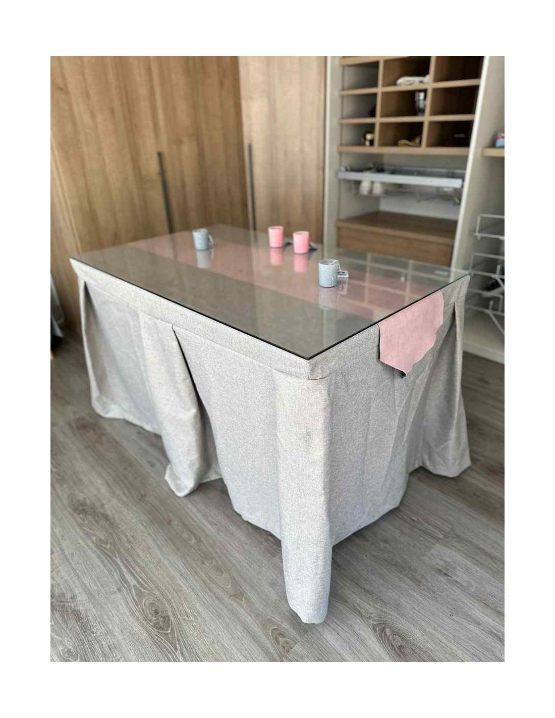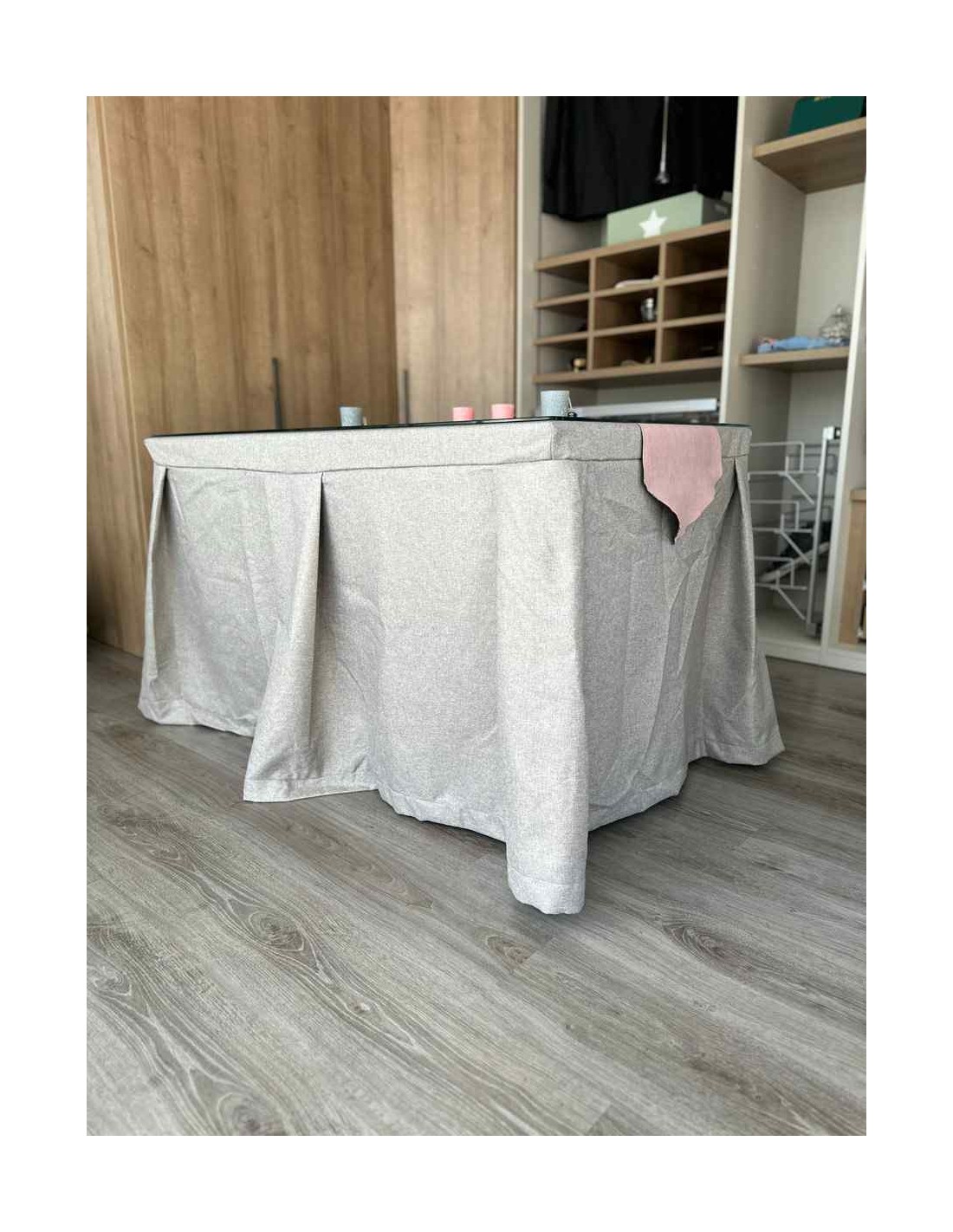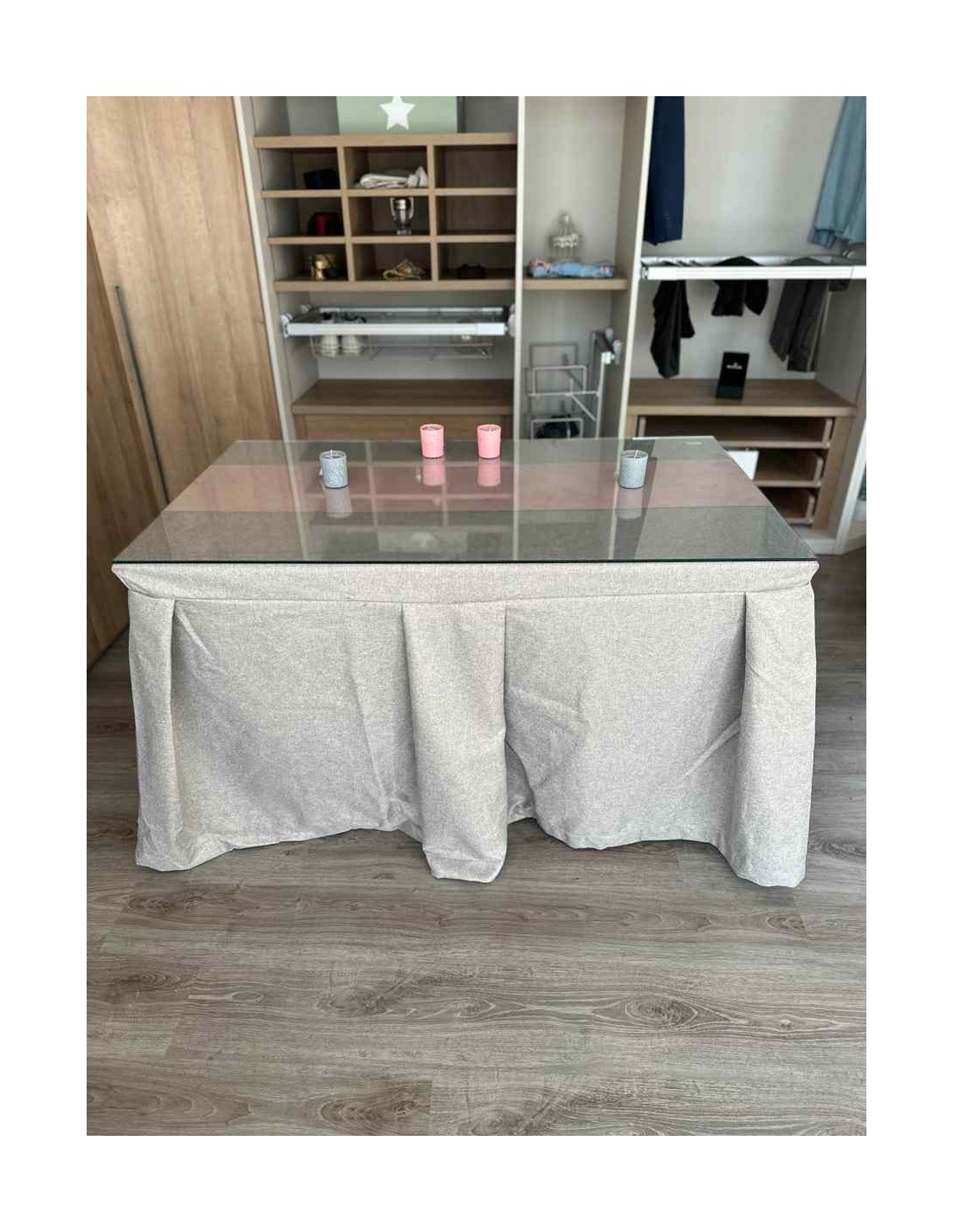 Vista su mesa de camilla con esta ropa de gran calidad y diseño italiano. Su tejido antimanchas le dará tranquilidad en el caso de que tenga pequeños o mascotas en casa. Este tipo de enaguas repele todo tipo de líquidos y evita, de esta manera, que la mancha llegue a quedarse impregnada en el tejido.