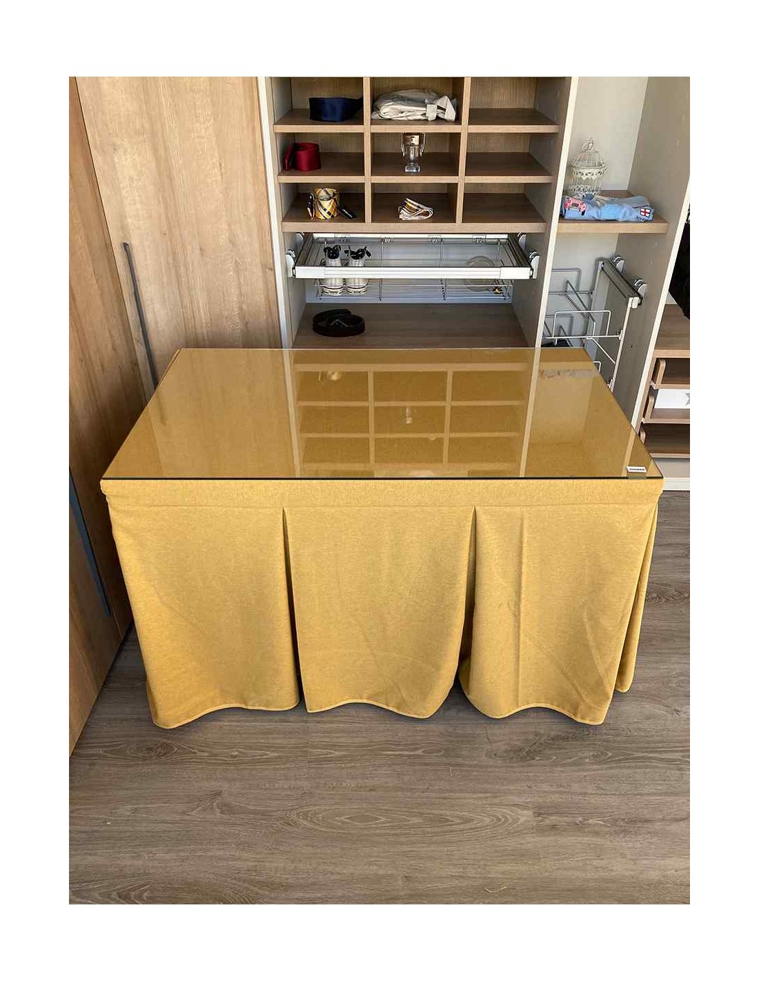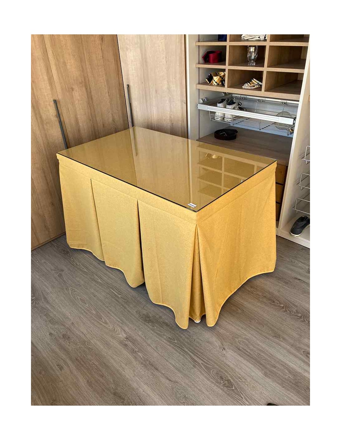 Las tablas comunmente llamados pliegues, favorecen la retención de la temperatura impidiendo escapar el calor cuando nos sentamos en la mesa y nos cubrimos con ella. Gracias a nuestro diseño en los fuelles la falda de mesa camilla caerá cubriéndono los laterales e impidiendo que escape el calor.