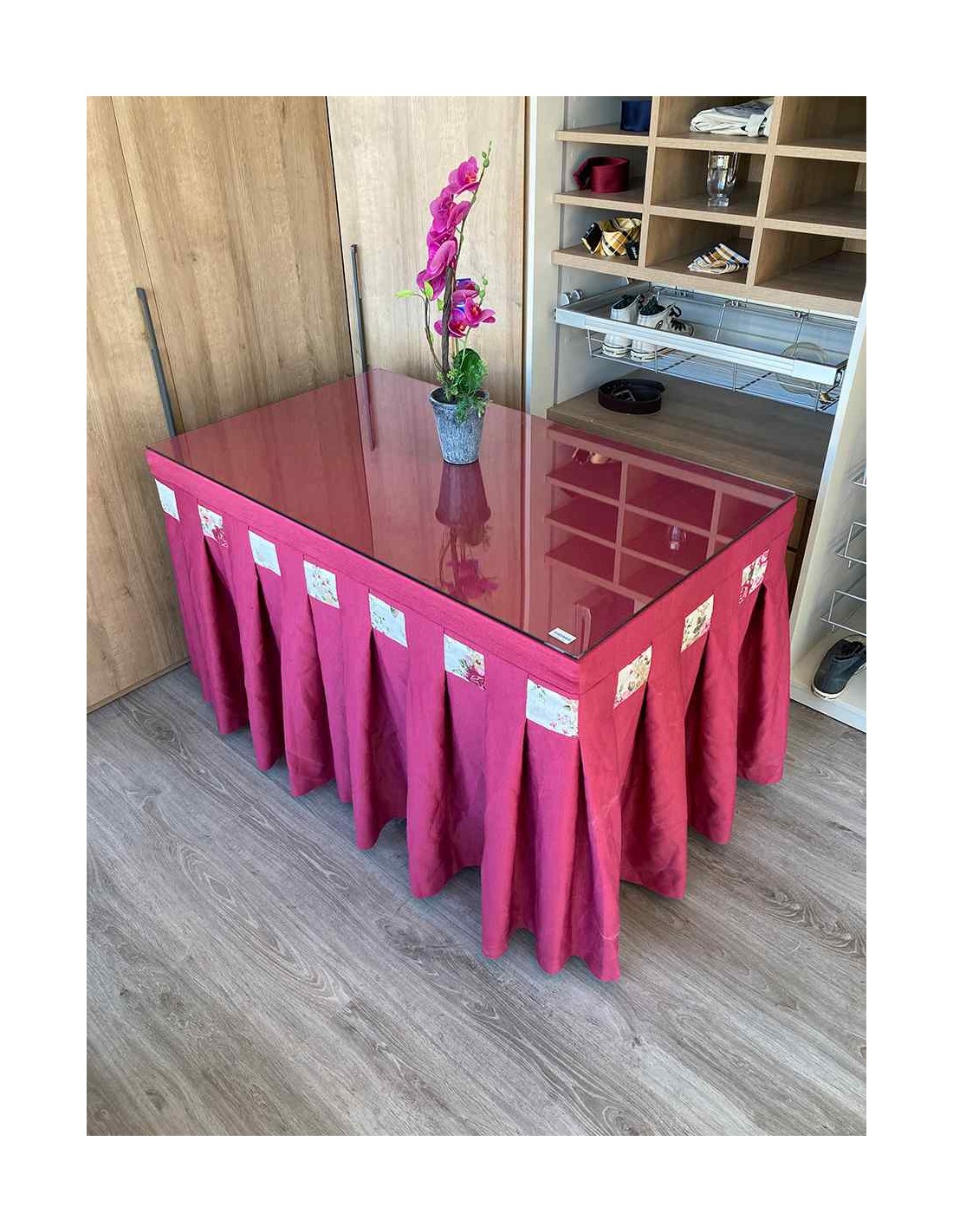 Elegante ropa de mesa camilla multipliegue de tejido fresco. Iideal para entre tiempo y verano.