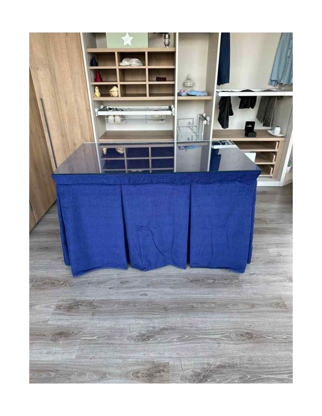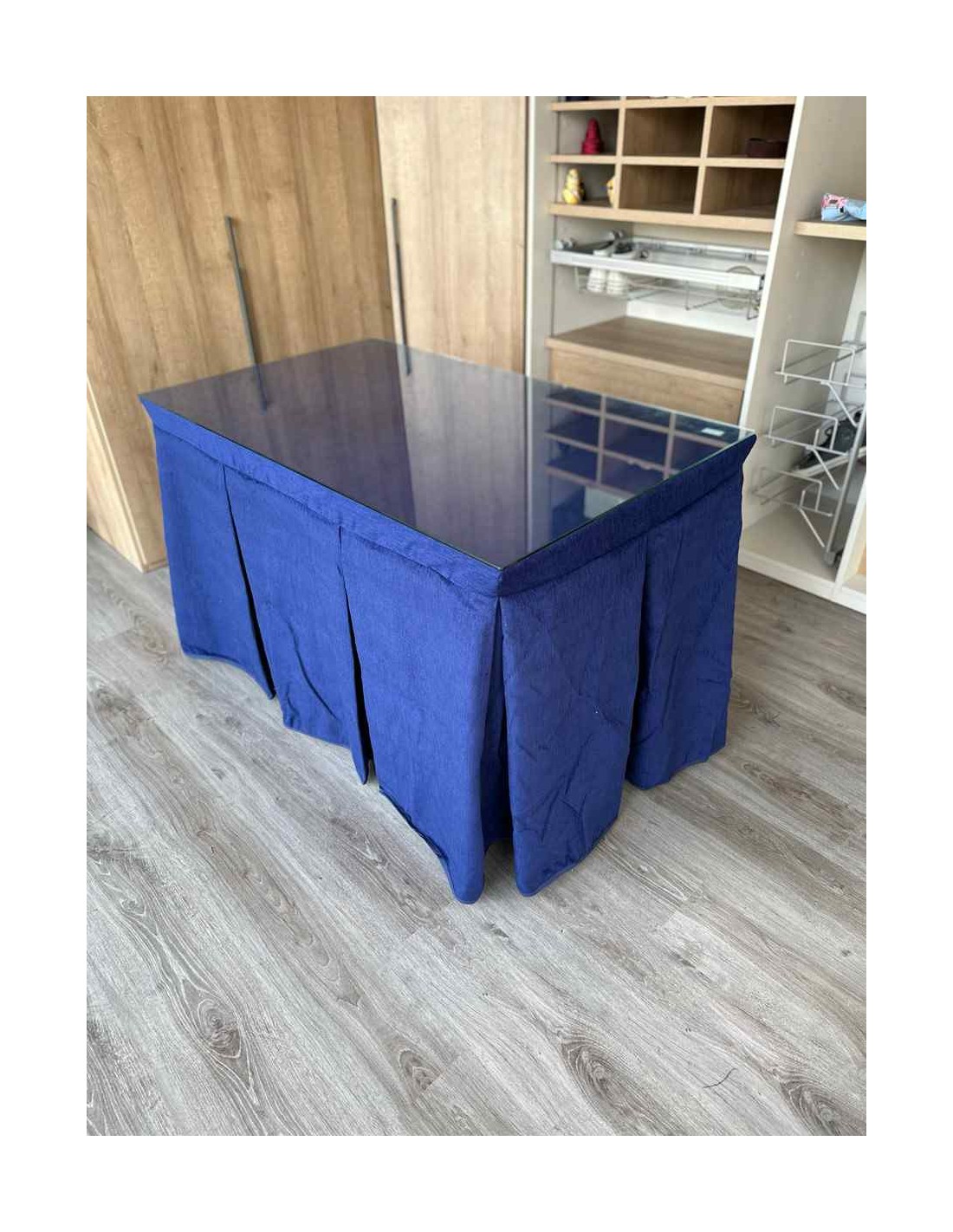 Confeccionada con 10 pliegues para mantener el calor de manera eficiente. Las tablas comunmente llamados pliegues, favorecen la retención de la temperatura impidiendo escapar el calor cuando nos sentamos en la mesa y nos cubrimos con ella. Gracias a nuestro diseño en los fuelles la falda de mesa camilla caerá cubriéndono los laterales e impidiendo que escape el calor.