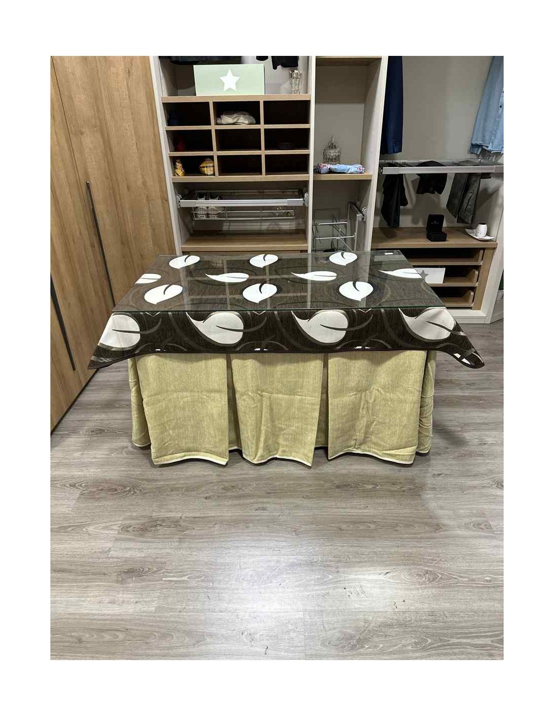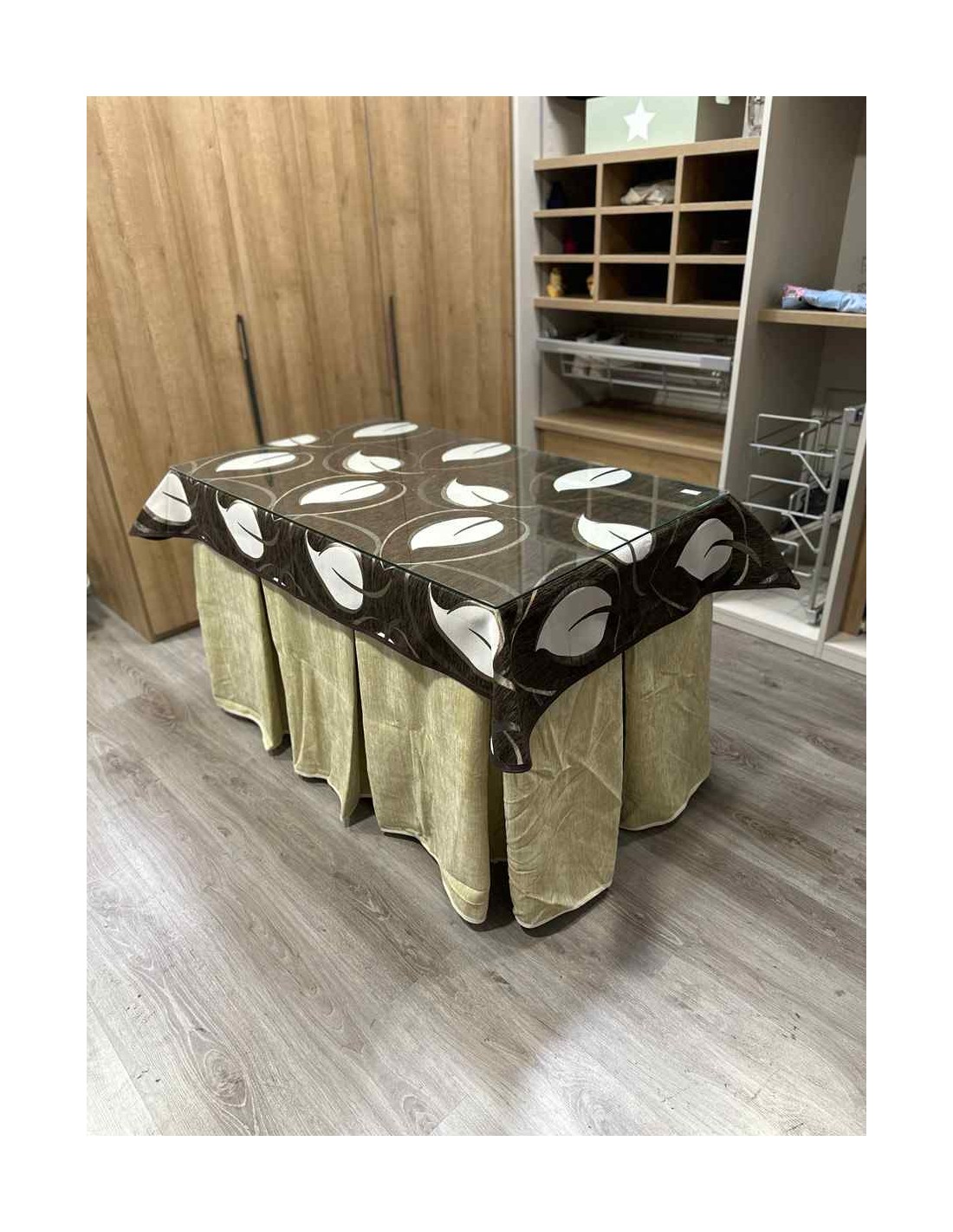 Confeccionada con 10 pliegues para mantener el calor de manera eficiente. Las tablas comunmente llamados pliegues, favorecen la retención de la temperatura impidiendo escapar el calor cuando nos sentamos en la mesa y nos cubrimos con ella. Gracias a nuestro diseño en los fuelles la falda de mesa camilla caerá cubriéndono los laterales e impidiendo que escape el calor.