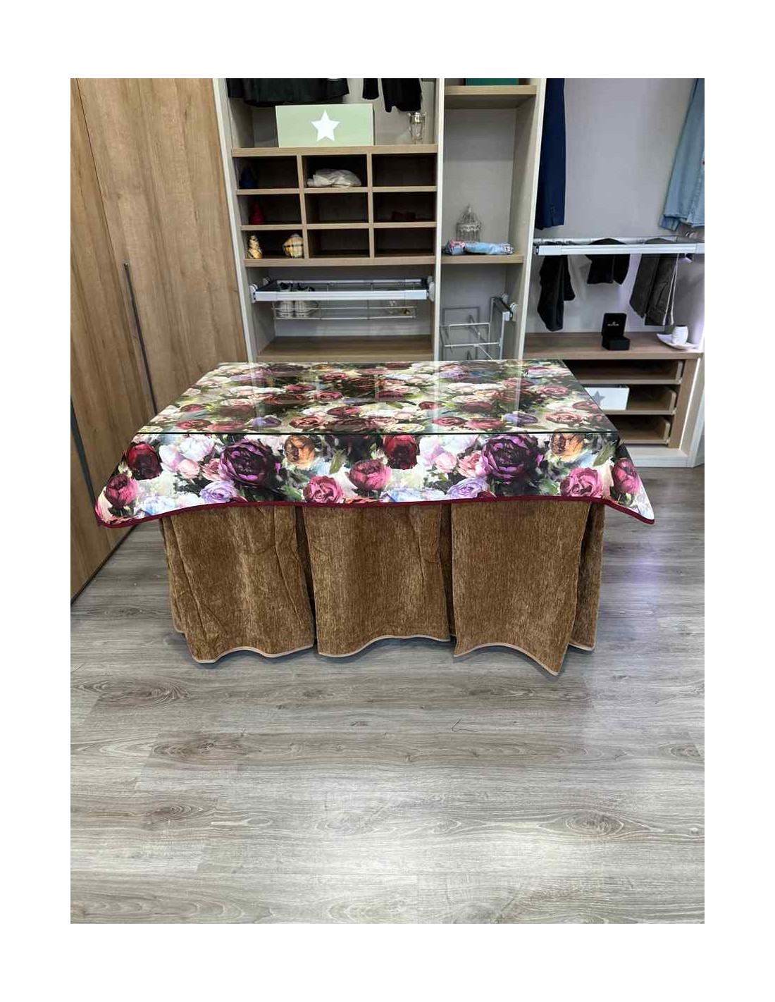 Ropa Doble Grueso 10 Pliegues Café con Tapete Flores