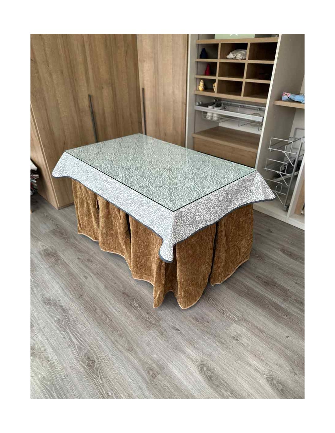 Confeccionada con 10 pliegues para mantener el calor de manera eficiente. Las tablas comunmente llamados pliegues, favorecen la retención de la temperatura impidiendo escapar el calor cuando nos sentamos en la mesa y nos cubrimos con ella. Gracias a nuestro diseño en los fuelles la falda de mesa camilla caerá cubriéndono los laterales e impidiendo que escape el calor.