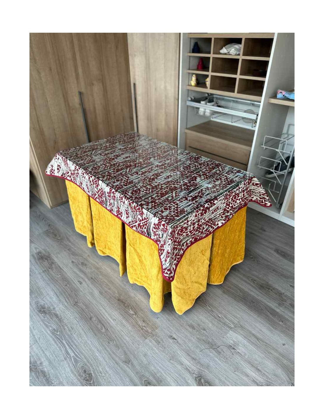 Ropa Doble Grueso 10 Pliegues Mostaza con Tapete Mosaico