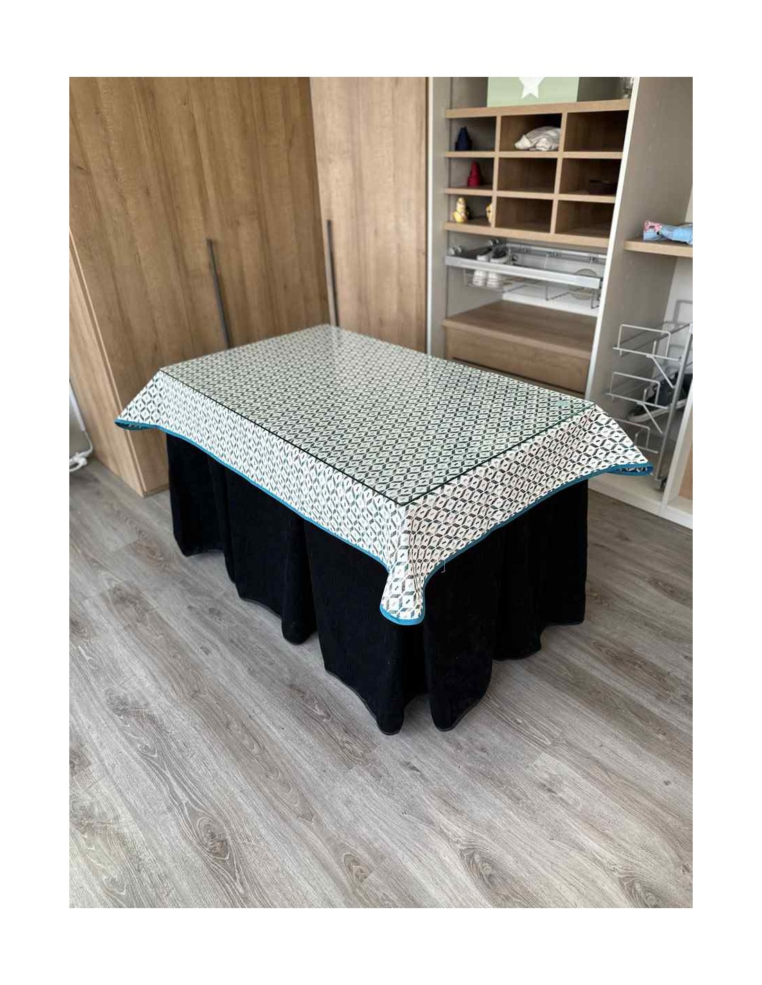 Confeccionada con 10 pliegues para mantener el calor de manera eficiente. Las tablas comunmente llamados pliegues, favorecen la retención de la temperatura impidiendo escapar el calor cuando nos sentamos en la mesa y nos cubrimos con ella. Gracias a nuestro diseño en los fuelles la falda de mesa camilla caerá cubriéndono los laterales e impidiendo que escape el calor.