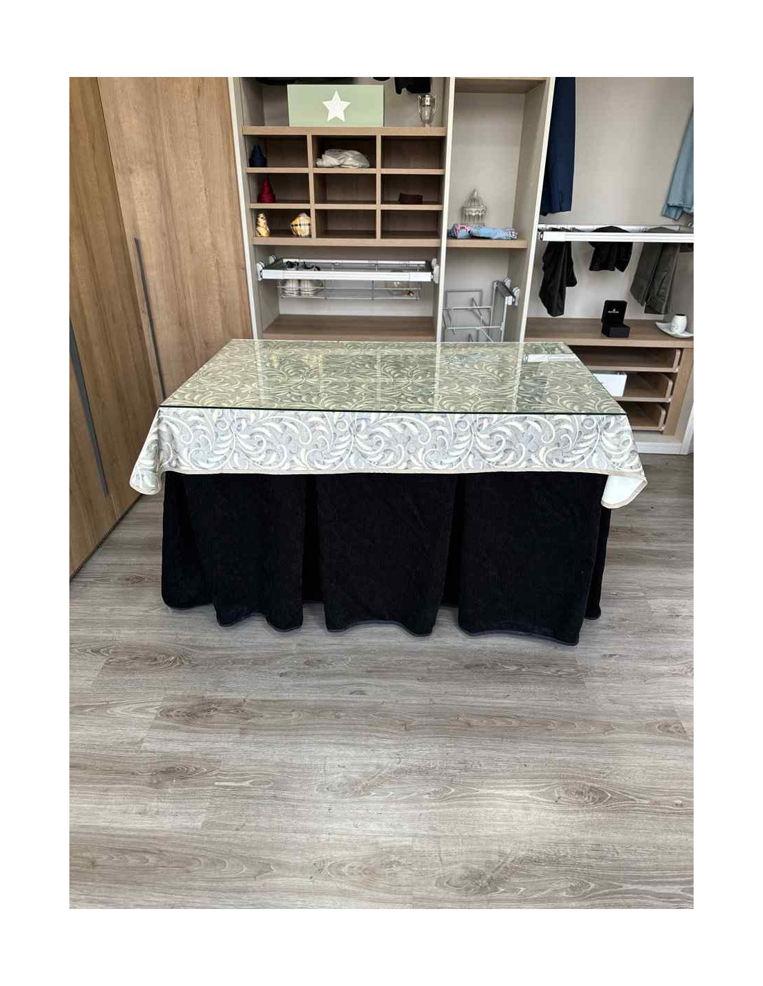 Confeccionada con 10 pliegues para mantener el calor de manera eficiente. Las tablas comunmente llamados pliegues, favorecen la retención de la temperatura impidiendo escapar el calor cuando nos sentamos en la mesa y nos cubrimos con ella. Gracias a nuestro diseño en los fuelles la falda de mesa camilla caerá cubriéndono los laterales e impidiendo que escape el calor.