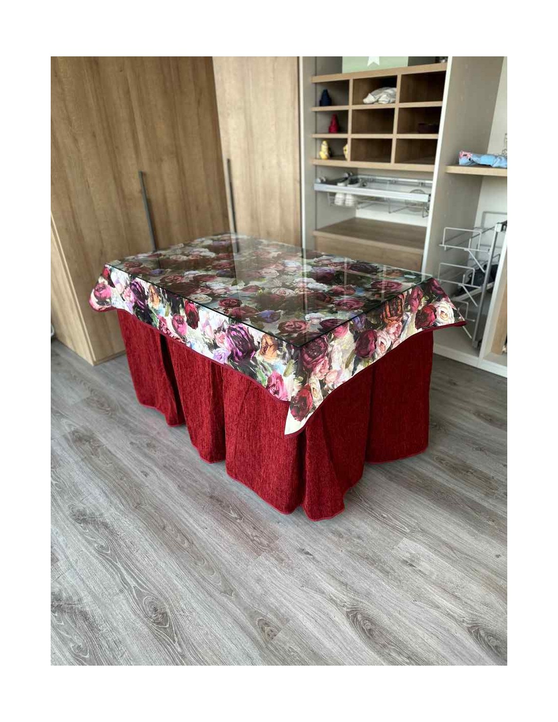Confeccionada con 10 pliegues para mantener el calor de manera eficiente. Las tablas comunmente llamados pliegues, favorecen la retención de la temperatura impidiendo escapar el calor cuando nos sentamos en la mesa y nos cubrimos con ella. Gracias a nuestro diseño en los fuelles la falda de mesa camilla caerá cubriéndono los laterales e impidiendo que escape el calor.