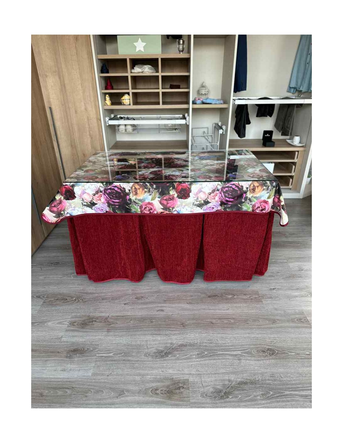 Ropa Doble Grueso 10 Pliegues Rojo con Tapete Flores