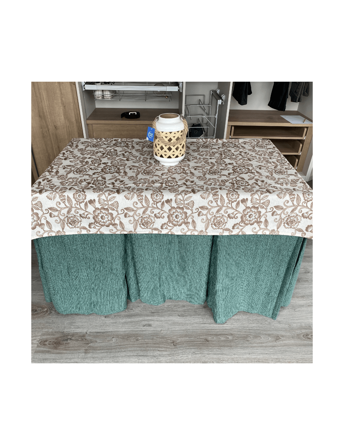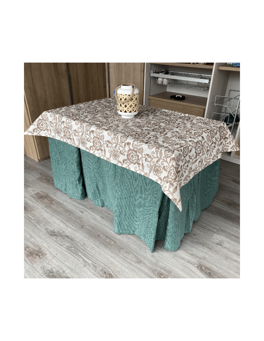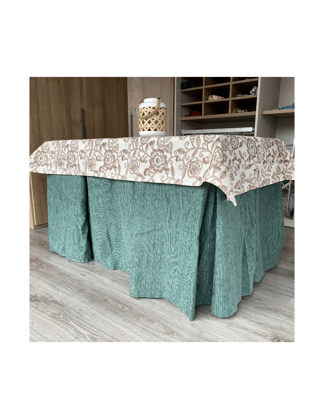 Ropa elegante para mesa camilla acabada en 10 pliegues.