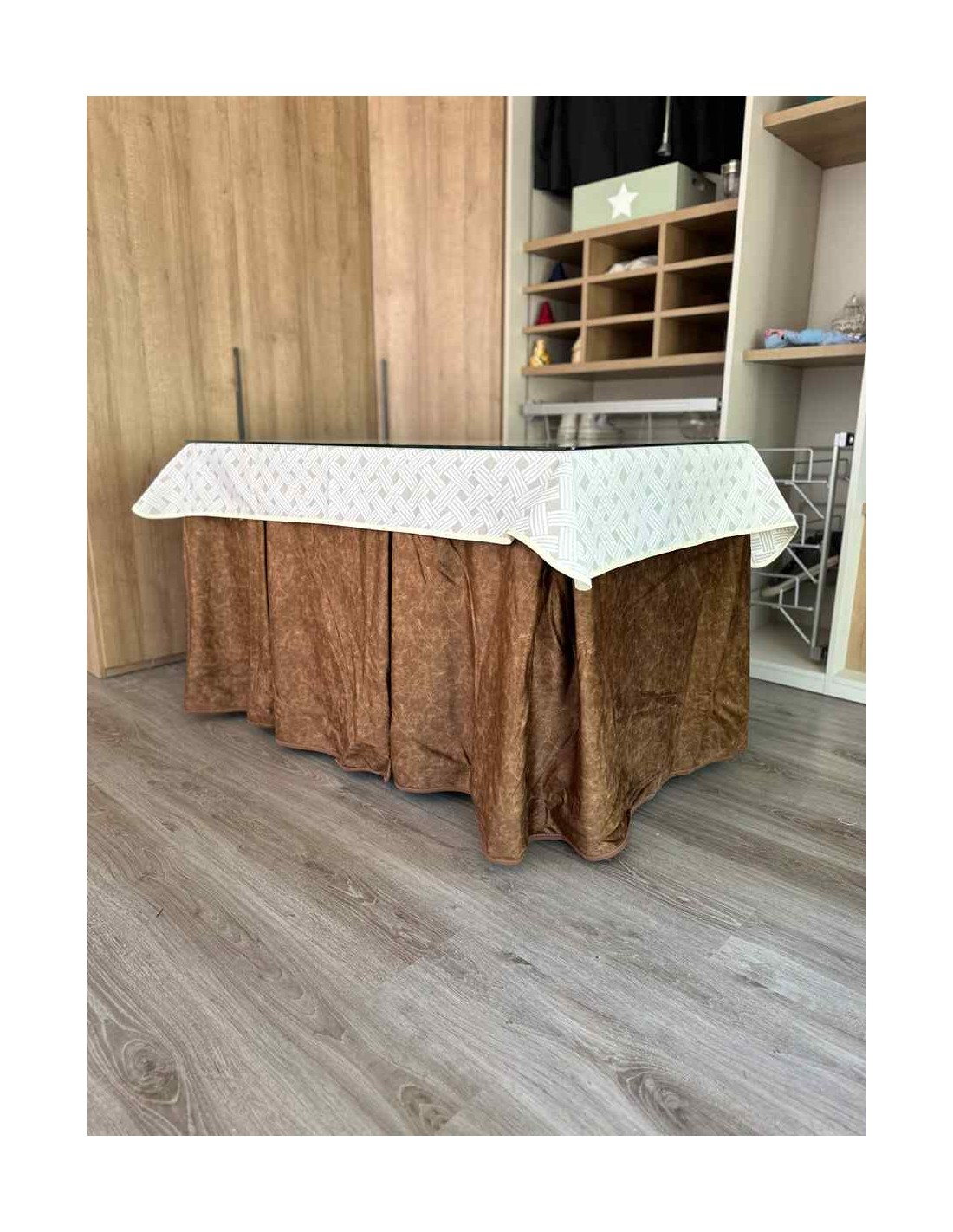 Ropa de mesa camilla chocolate con forro polar de borrego blanco
