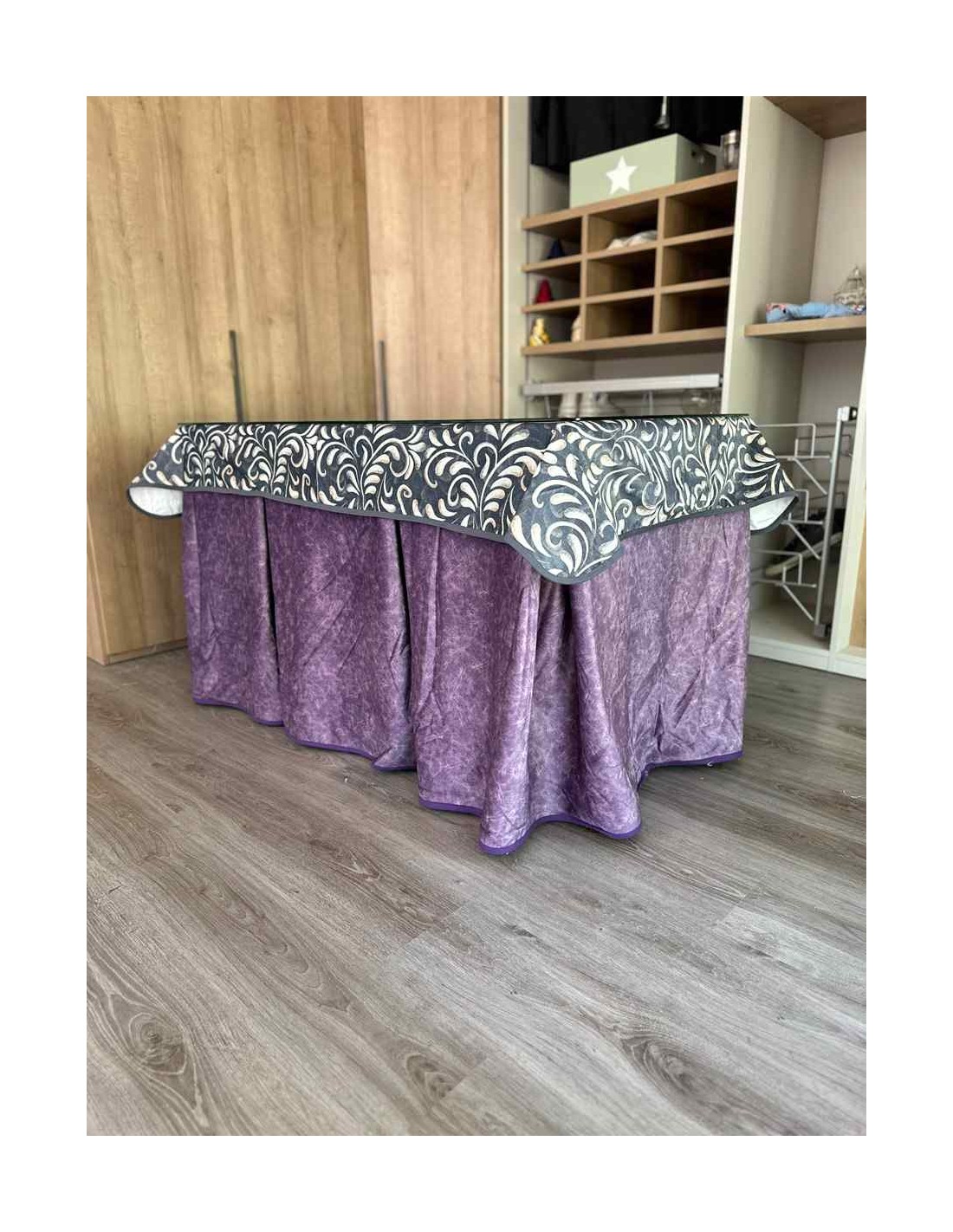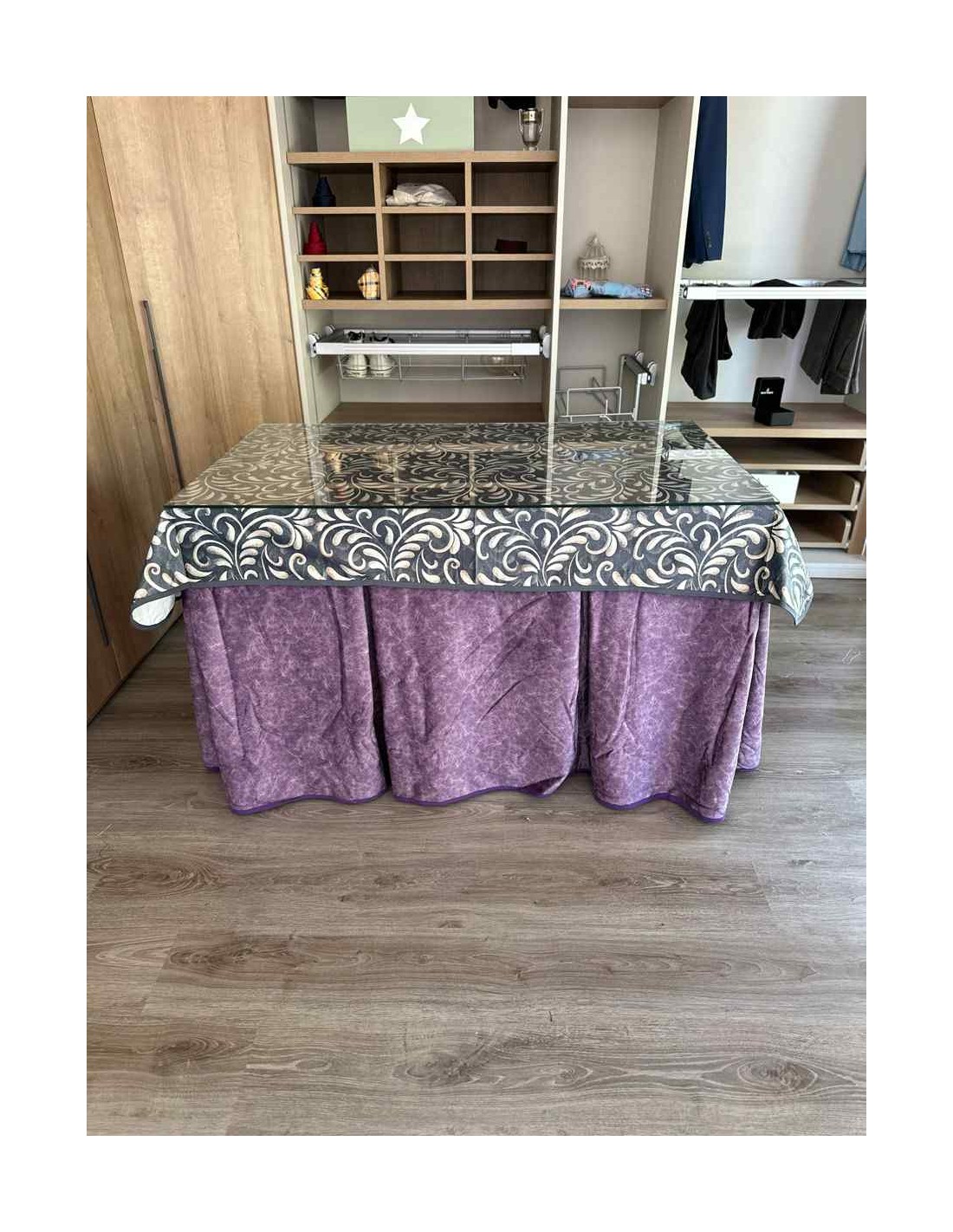 Ropa de mesa camilla morada con forro polar de borrego blanco
