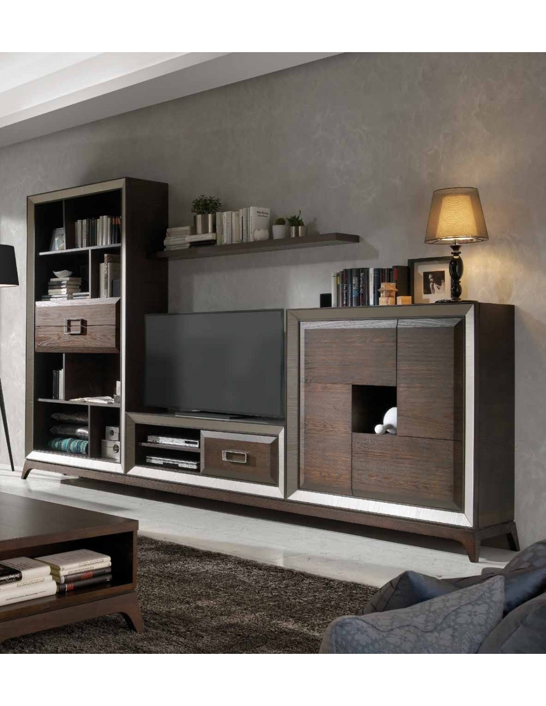 Salon comedor con patas altas diseño moderno lacado o barnizado modular con vitrinas (5)