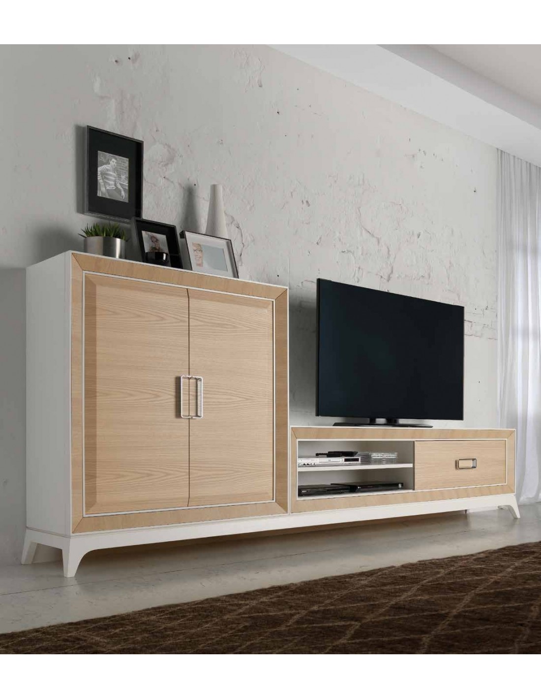 Salon comedor con patas altas diseño moderno lacado o barnizado modular con vitrinas (8)