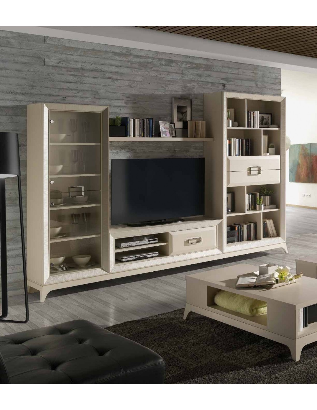 Salon comedor con patas altas diseño moderno lacado o barnizado modular con vitrinas (9)