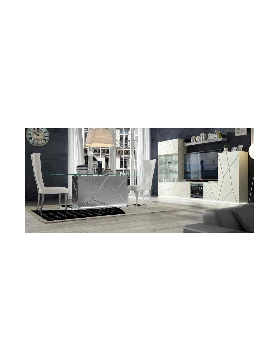 Salon comedor moderno con mesas y sillas a juego madera lacada alta gama en brillo diferentes colores (1)
