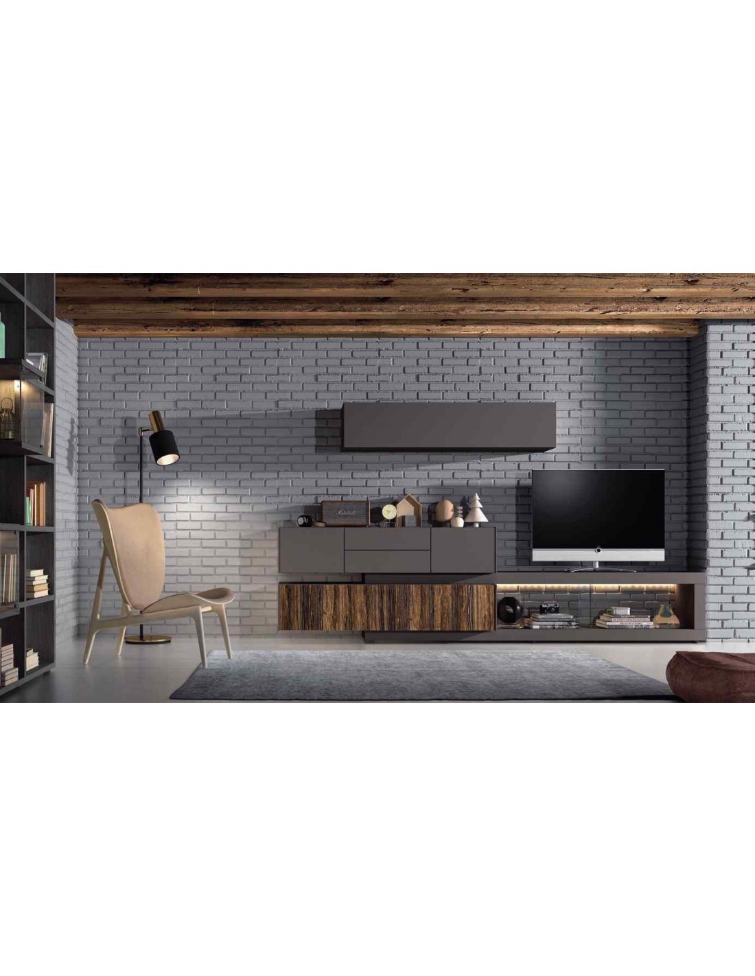 Salon diseño moderno mezcla de madera con varios colores con estantes y aparadores a juego (1)