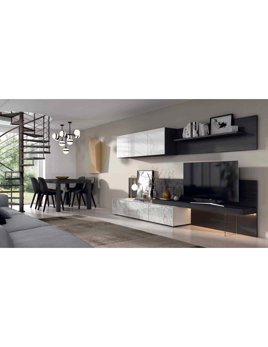 Salon diseño moderno mezcla de madera con varios colores con estantes y aparadores a juego (18)