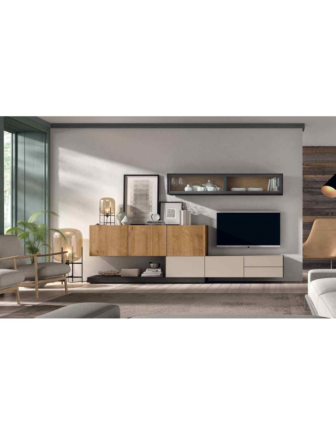 Salon diseño moderno mezcla de madera con varios colores con estantes y aparadores a juego (7).1