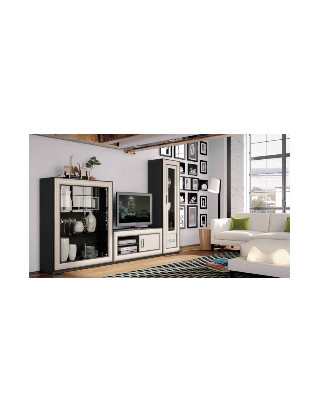 Salon modular diseño moderno con diferentes acabados de color con vitrinas de cristal anchas y estrechas y bajos de tv (21)