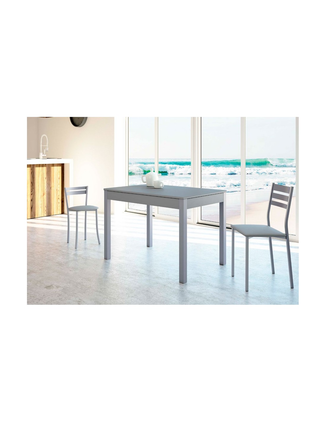 Silla de Aluminio con Asiento de Polipiel Color Gris