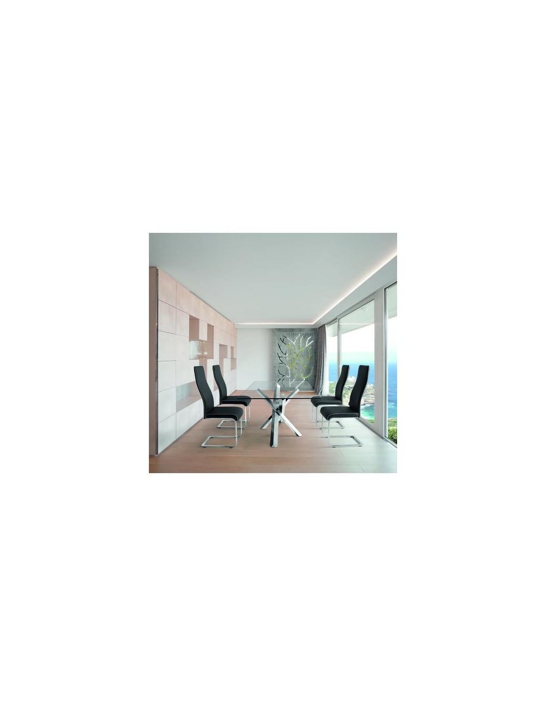 Silla de comedor con un estilo extremamente contemporáneo estructura en metal y una variada gama de colores en ecopiel.