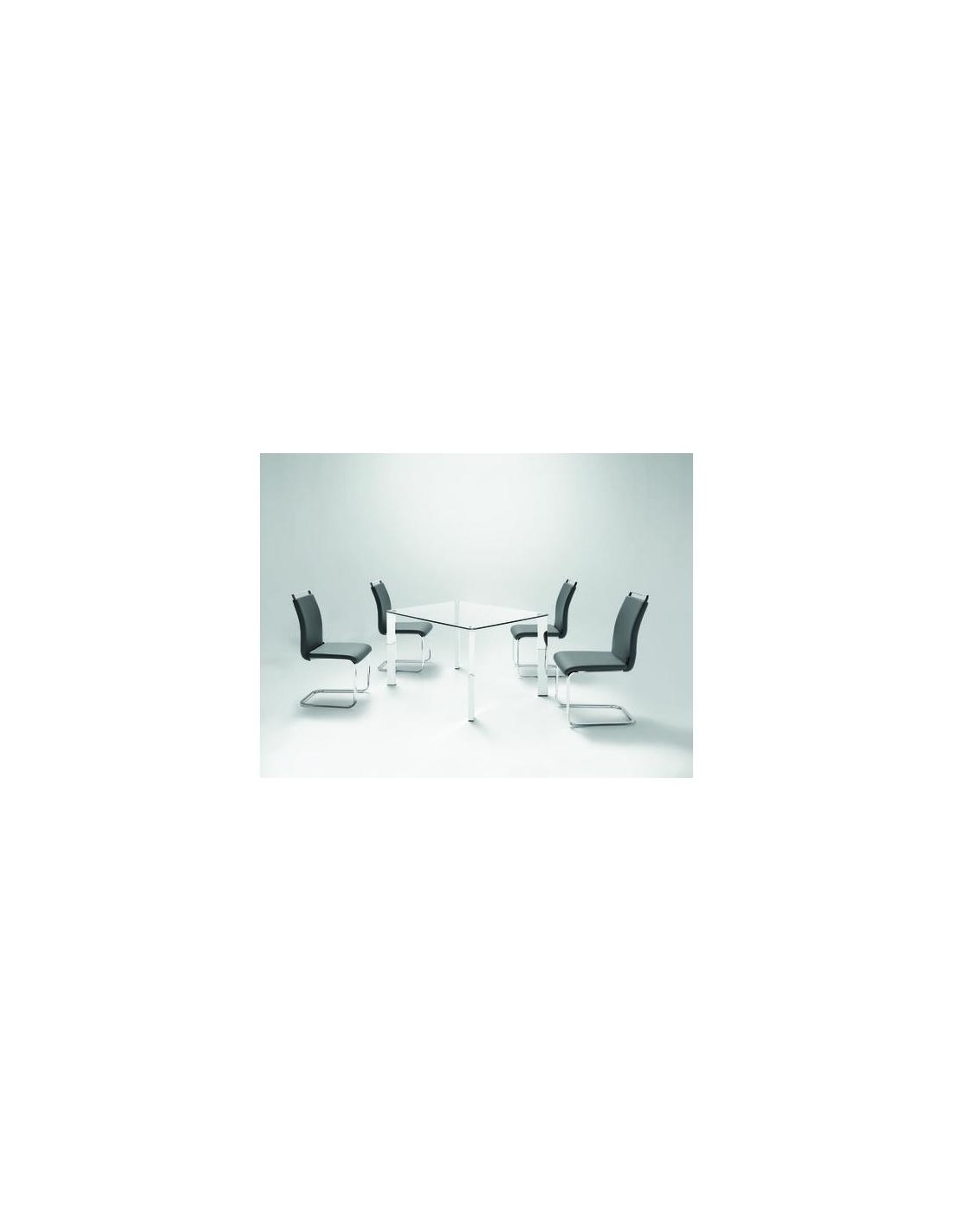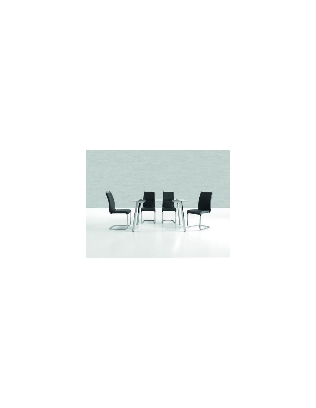 Elegancia y personalidad aplicadas en el diseño de esta silla, combinando el acero cromado y el tapizado en ecopiel.