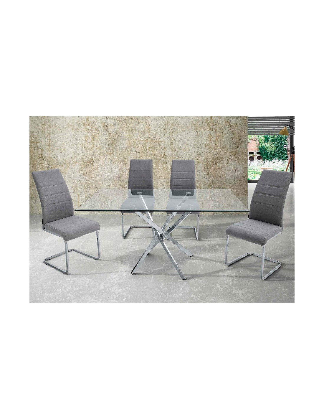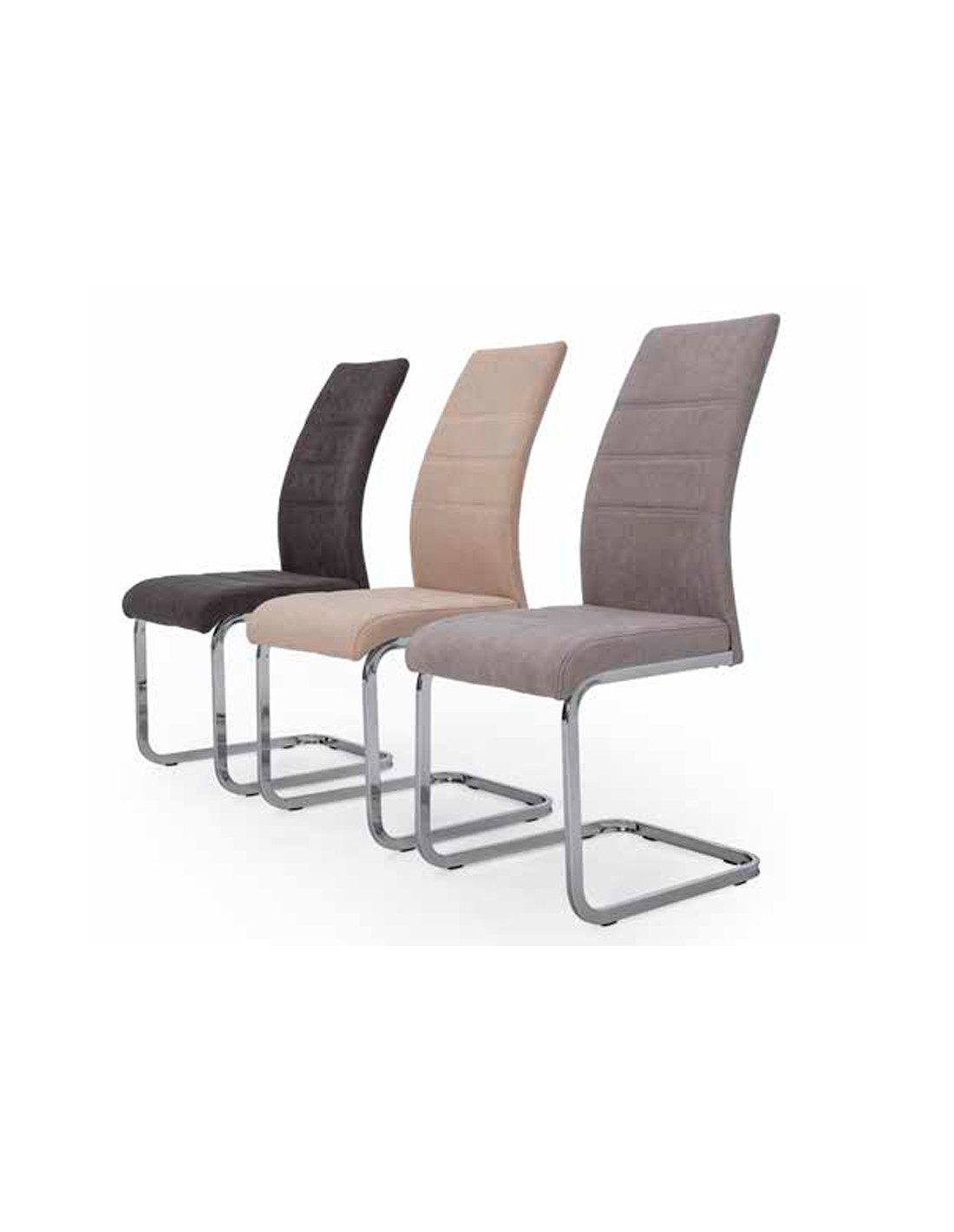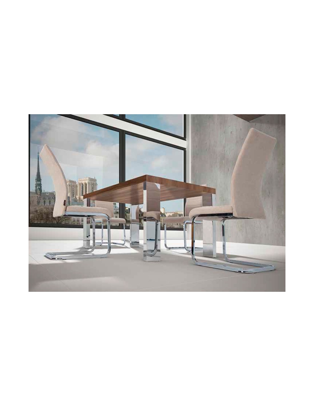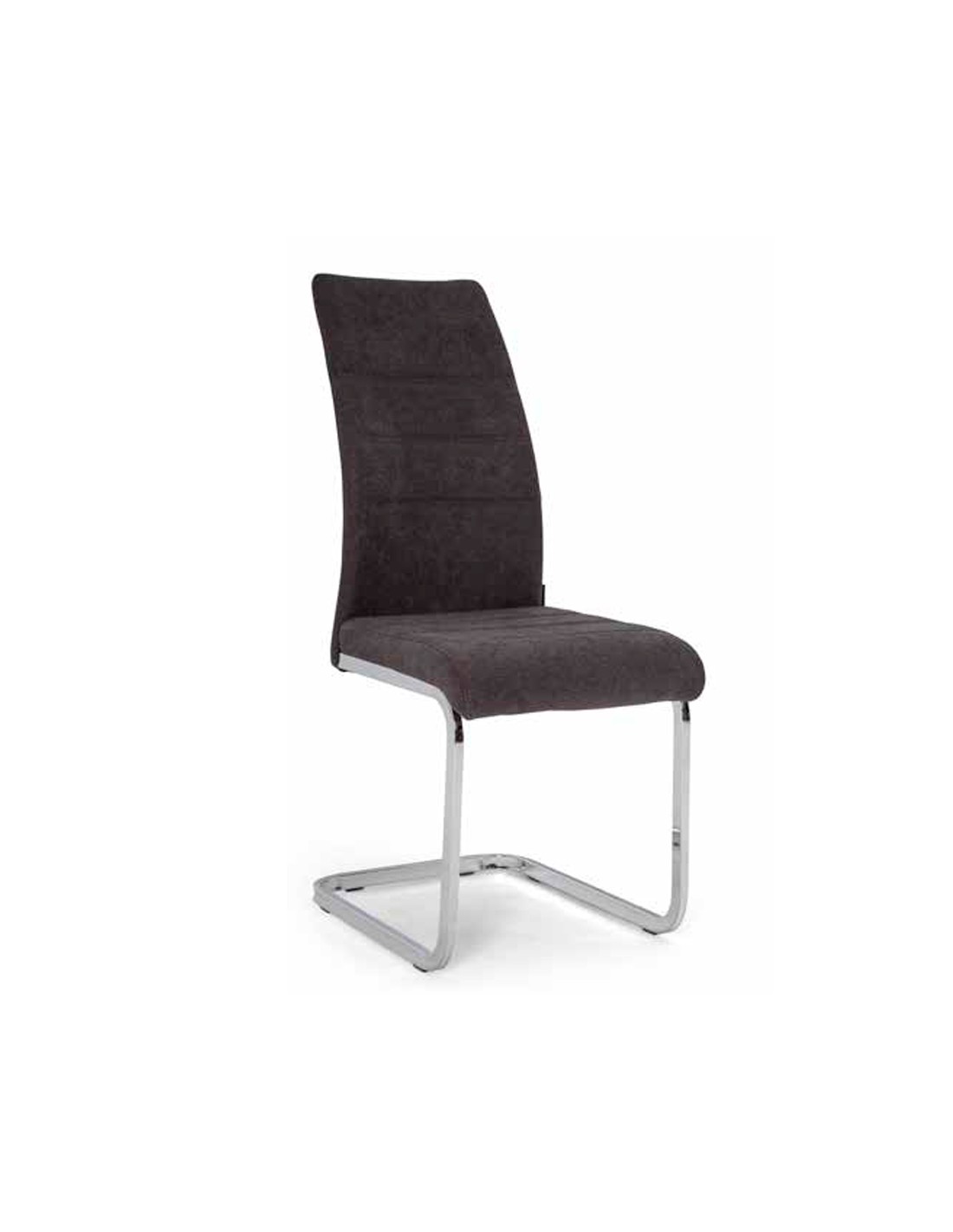 Elegancia y personalidad aplicadas en el diseño de esta silla, que combina el acero cromado con un tapizo en tejido de gran calidad y prestancia.