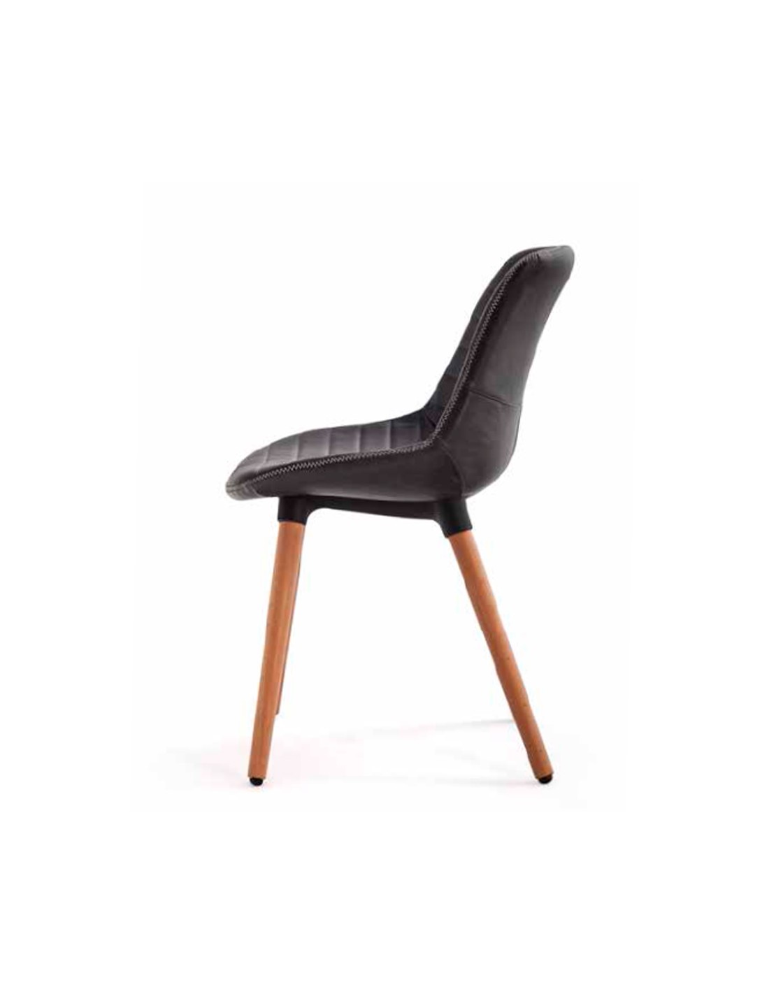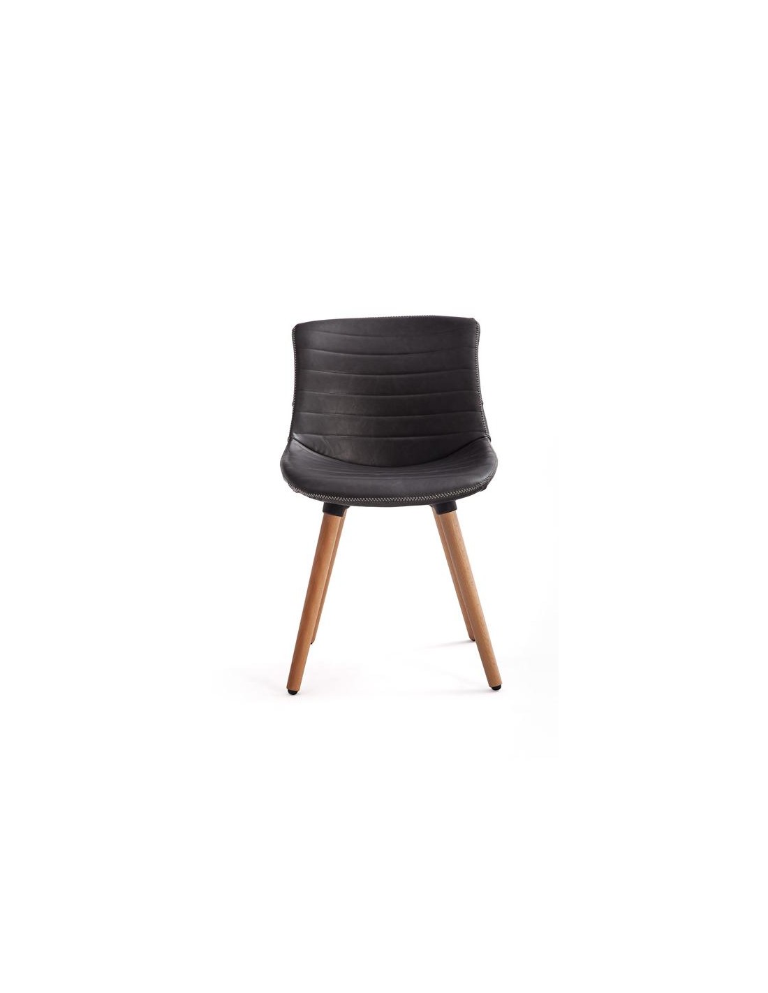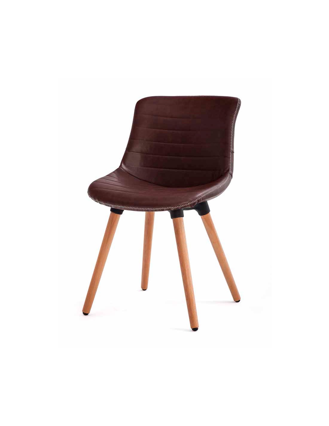 Una silla moderna y elegante, con patas de madera natural que también pueden lacarse. Asiento y respaldo acolchado, tapizado en ecocuero que combina a la perfección con mesas de comedor de diferentes estilos, creando un ambiente diáfano y confortable. También ideal como silla confidente.