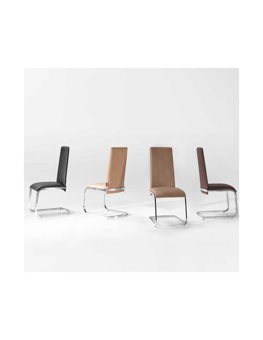 Haciendo alarde de un gran conocimiento en el manejo del tapizado combinado con el cromo, la silla Vera resulta muy elegante y sugerente.