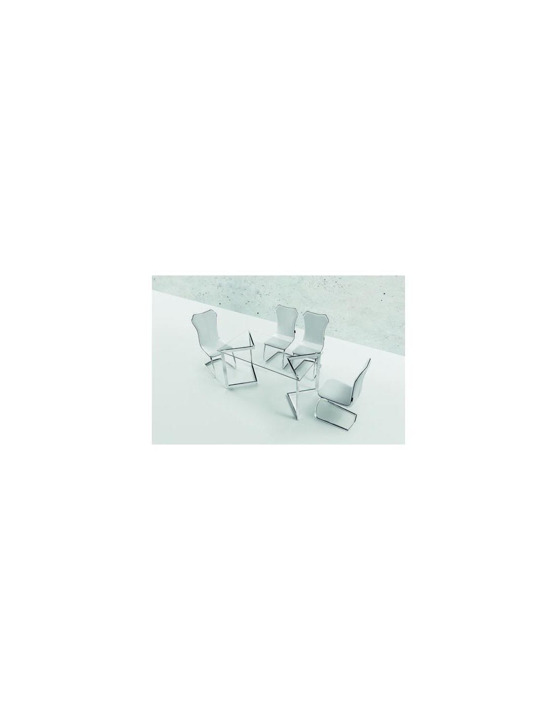 La silla modelo Vortex es un auténtico alarde de imaginación en el que se integran patas cromadas junto a asiento y base tapizados en una sola pieza, con una perfección formal exquisitas.