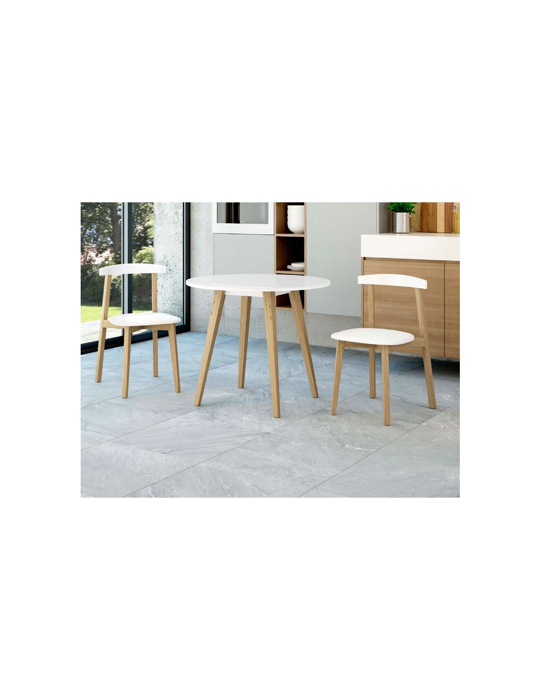 Silla de Madera Barnizada con Asiento de Polipiel Color Blanco