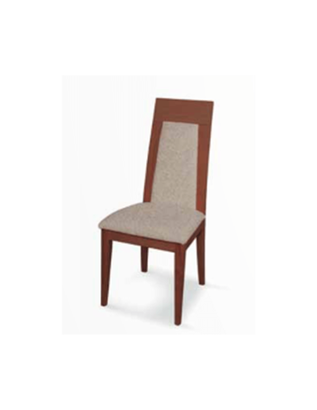 Silla de madera con asiento tapizado y respaldo de madera alcolchado