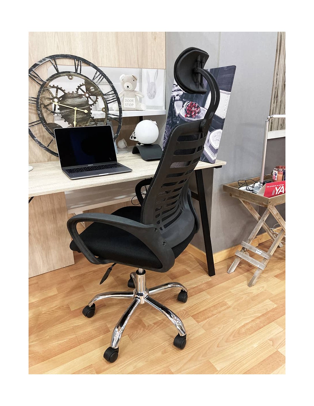 Silla de oficina con reposacabezas ajustable muy comoda regulable con gas. Tejido transpirante con revestimiento de rejilla.