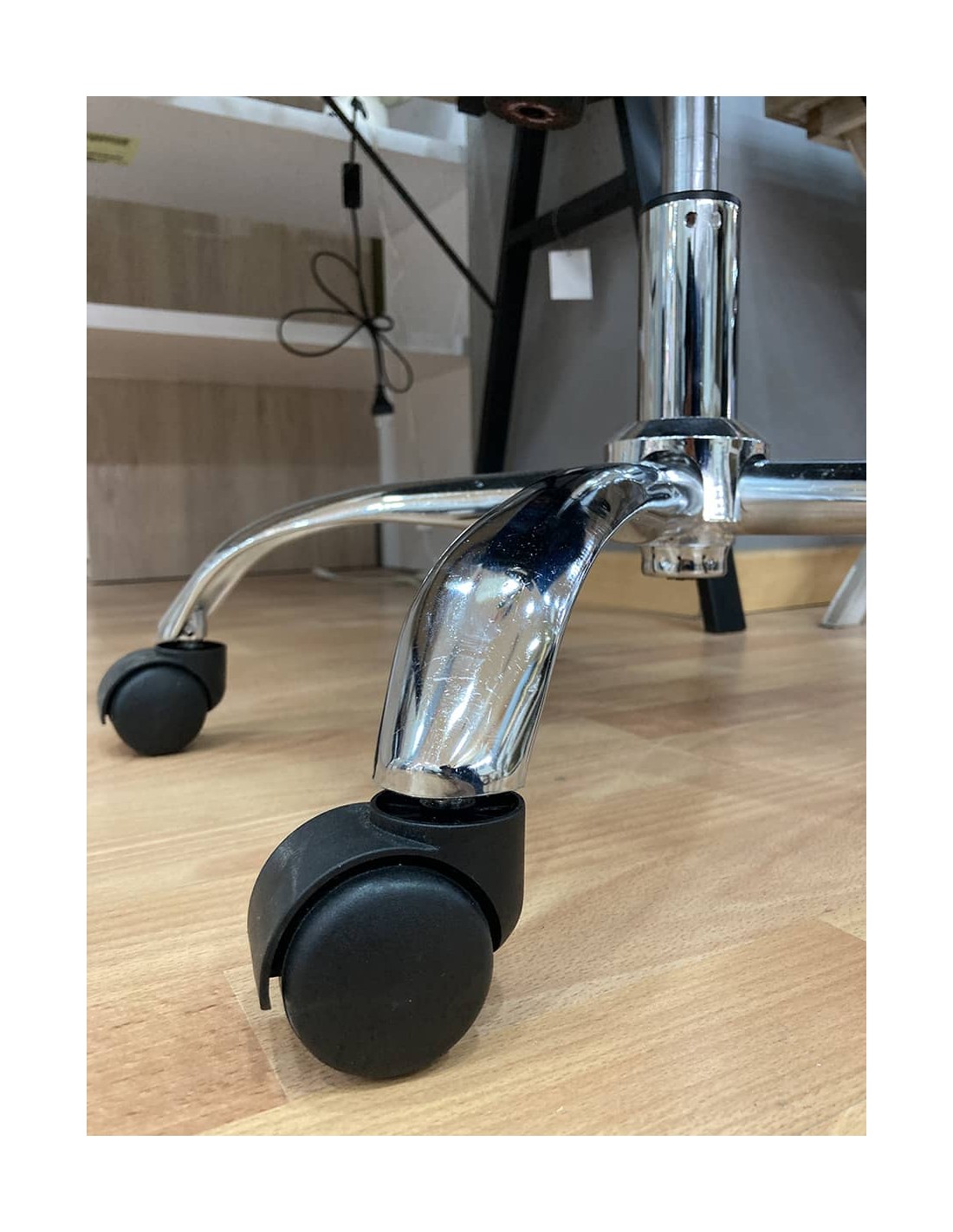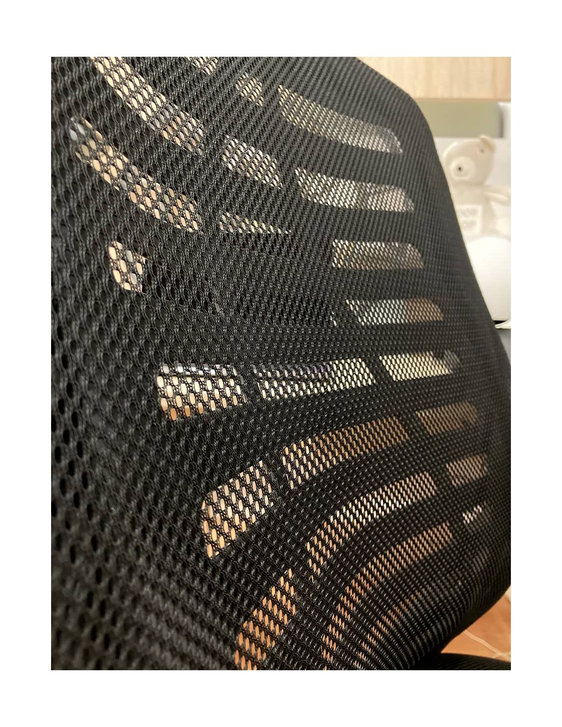 Respaldo con un revestimiento de rejilla, lo que permite que la espalda transpire con libertad, haciéndola recomendable para entornos calurosos. Soporte metálico con efecto cromado brillante.