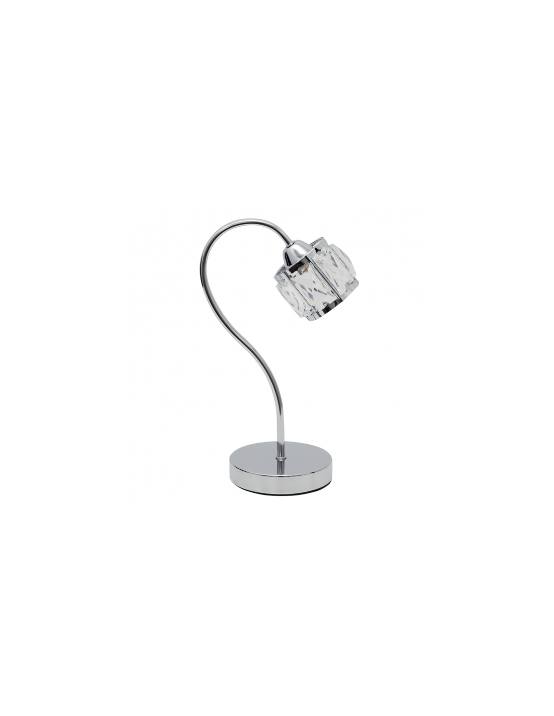 Sobremesa de la serie ESENCIA. Realizado en metal y cristal en color cromo. Sus medidas son 33,5X20X13 cm. Utiliza un porta lámparas G9 (recomendamos los modelos de tecnología LED). Puede completar la familia con los plafones y apliques de la misma serie. Su peso neto es de 910 g.