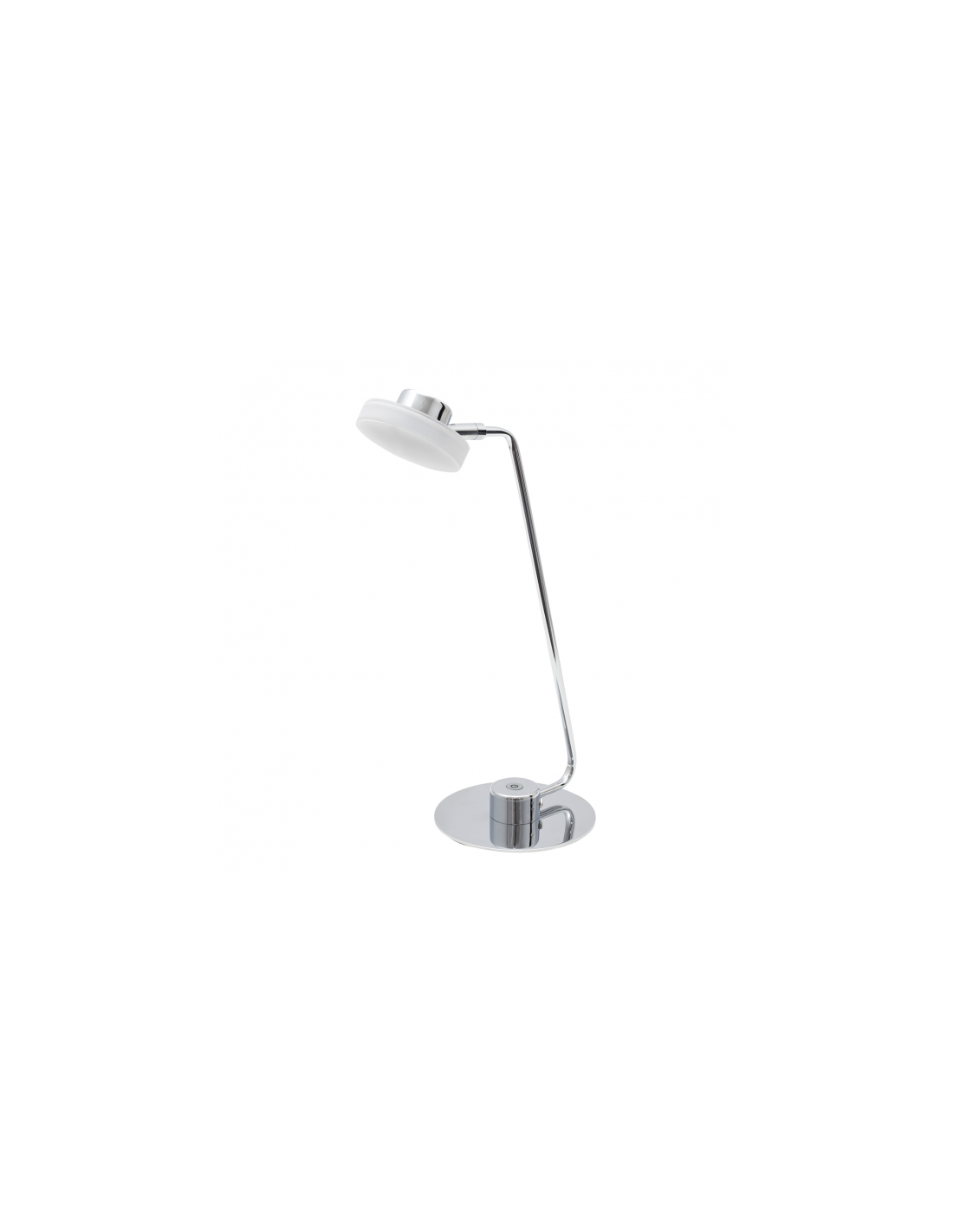 Sobremesa serie Tantra en color cromo. Está realizado con tecnología de LED INTEGRADO de 14W, 1260 lúmenes y 4000 ºk de color de luz. La intensidad de luz es regulable.