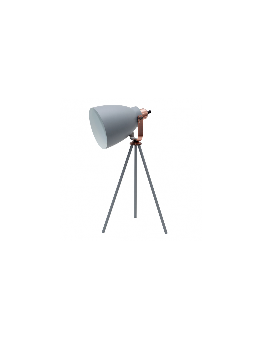 Sobremesa serie GETTING de color gris. Realizado en metal, se caracteriza por un soporte en forma de trípode que le aporta gran originalidad. Utiliza un porta lámparas E27. Sus medidas son 55x17 cm de diámetro. Puede completar la serie con el colgante y pie de salón de la misma familia.