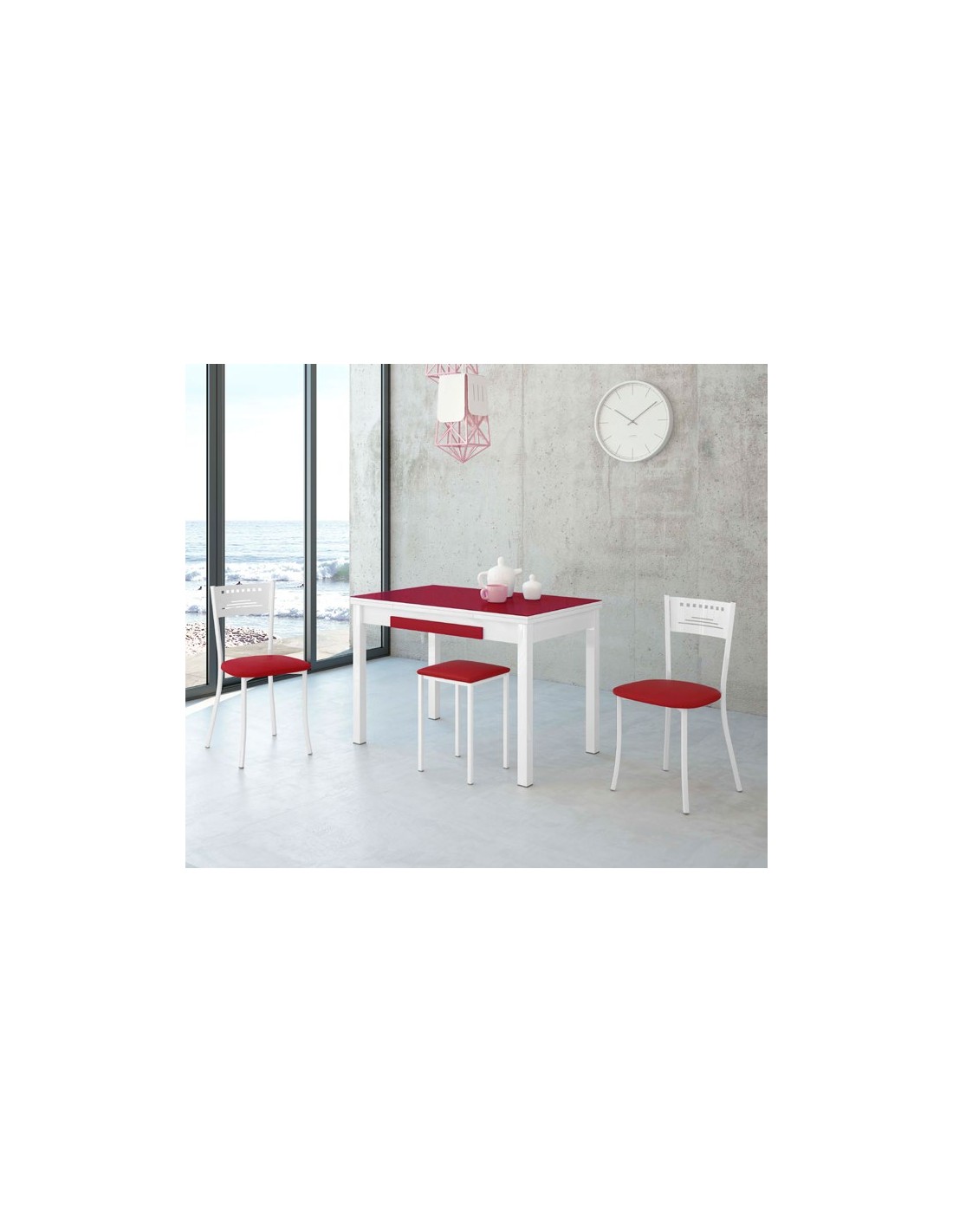 Taburete de Aluminio con Asiento Polipiel Color Rojo