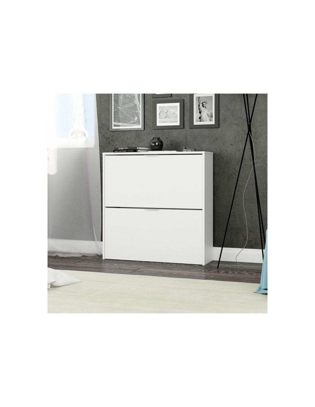 - Zapatero de 2 puertas abatibles con capacidad de 16 pares de zapatos aproximadamente.